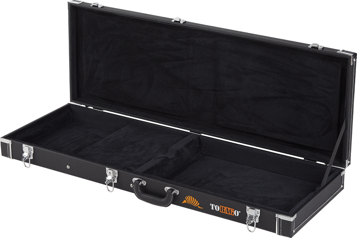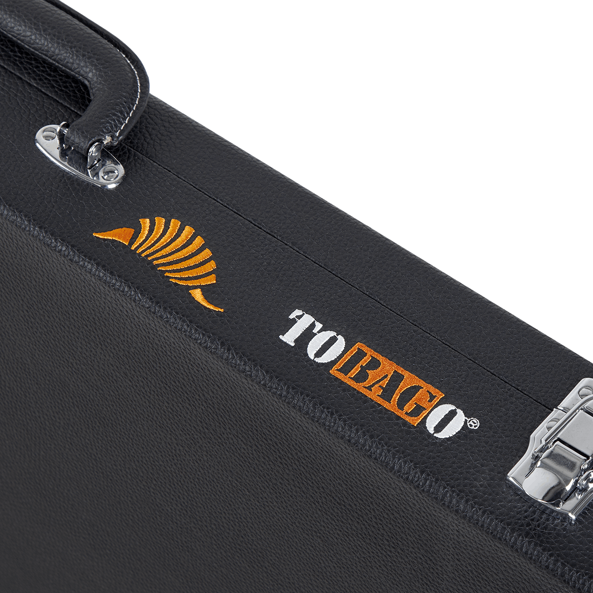 La bande latérale du boîtier, à côté de la poignée latérale, présente les élégants logos Tobago et Armadillo. La fermeture à loquet en métal avec verrou assure une protection supplémentaire contre tout accès non autorisé, garantissant ainsi la sécurité de votre instrument.