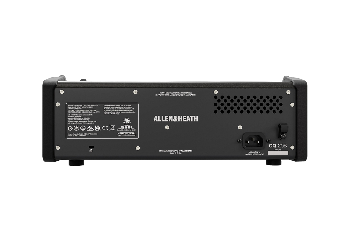 Misant sur un encombrement et un poids réduits au maximum, la CQ-20B présente une interface physique minimaliste et discrète, en faisant la console idéale pour une installation sur scène, en backstage, ou dans une baie près d'une salle de conférence. Cette interface minimaliste est largement compensée par un module WiFi avec antenne dual-band très stable et efficace, permettant d'interagir avec les deux puissantes applications multiplateformes (iOS, Android, MacOS, Windows) dédiées aux CQ : contrôlez tous les paramètres de mixage de votre console comme sur une interface physique classique avec l'application CQ-MixPad, et laissez les artistes contrôler en toute liberté le mix de leur retour personnel avec l'application CQ4You afin de décharger l'ingénieur du son de cette tâche.