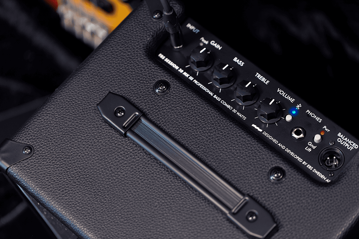 Pour ceux qui désirent travailler sur backing tracks - car c'est avant tout un ampli pour travailler chez soi -, le Session 30 est équipé d’une connectique Bluetooth proposant une fonction de streaming audio via le haut-parleur + tweeter pour une définition claire. Cette fonction se complète d’une sortie casque pour jouer en silence, et d’une sortie DI XLR post-égalisation, parfaite pour s'enregistrer ou se connecter directement à un système de sonorisation.