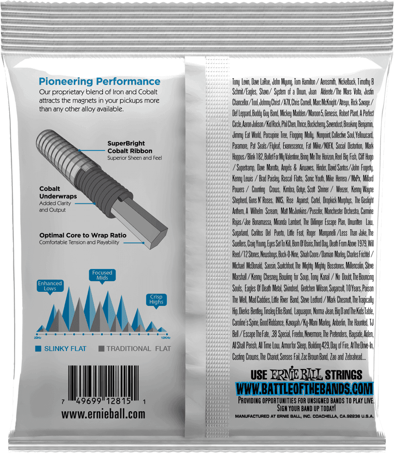Jeux - Extra slinky 40-60-70-95Les Flatwound combinent le confort et les sensation d'un jeu filé plat avec la modernité du son lié au cobalt.