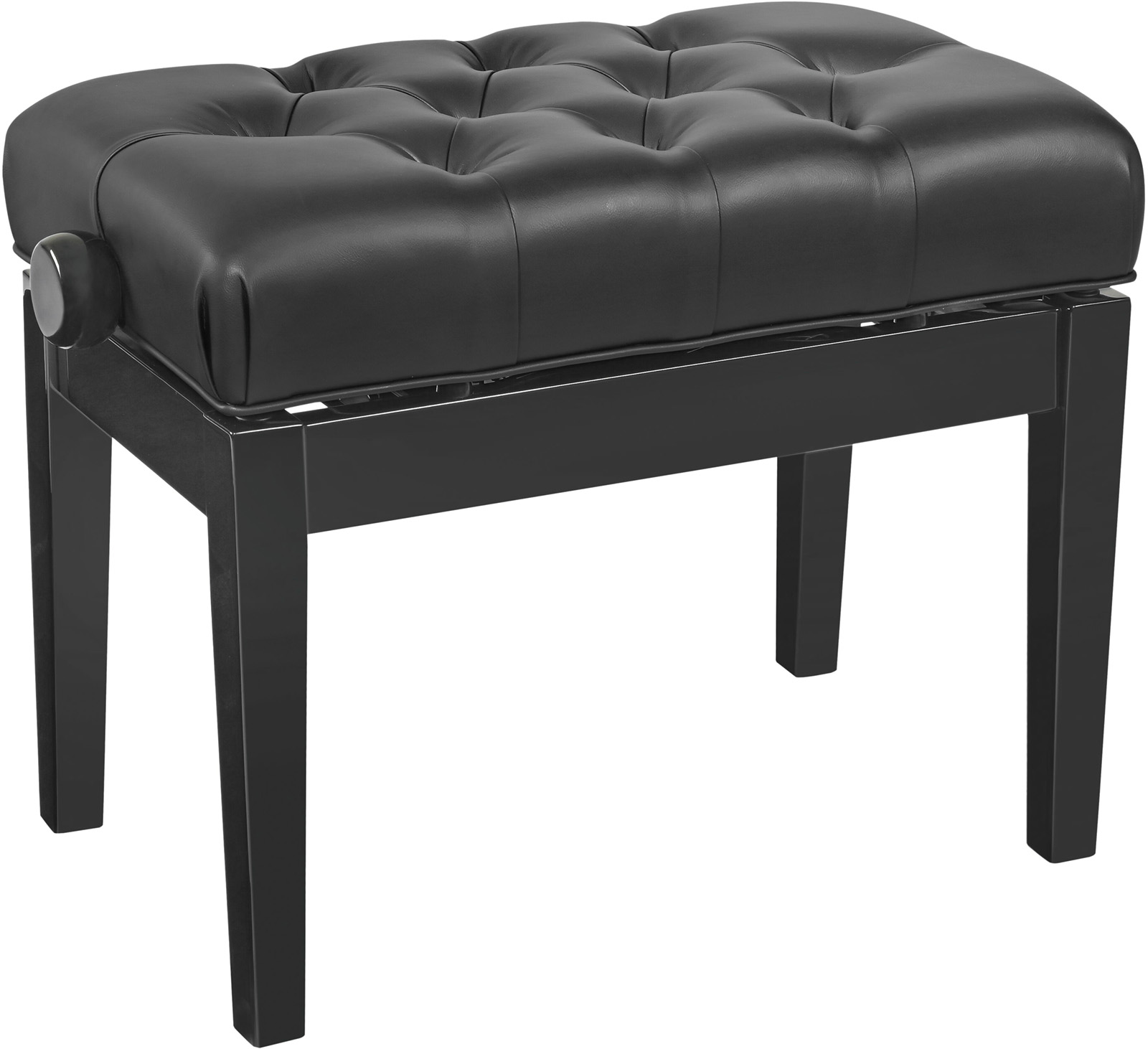 Hydraulique - Banc de piano hydrauliqueCe banc de piano extrêmement confortable est équipé de vérins pneumatiques haute performance. La hauteur réglable en continu de 470 à 570 mm est également idéale pour les écoles de musique. La finition noir brillant et le revêtement en similicuir noir avec clous décoratifs lui confèrent un aspect élégant. Les pieds de nivellement garantissent une stabilité parfaite.