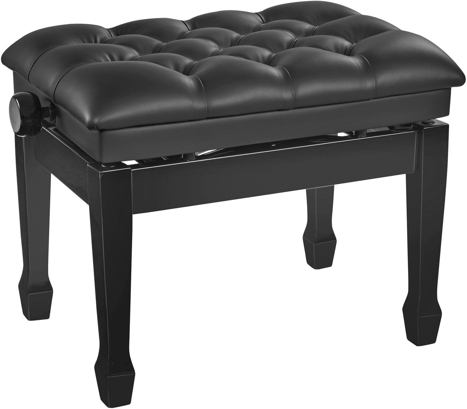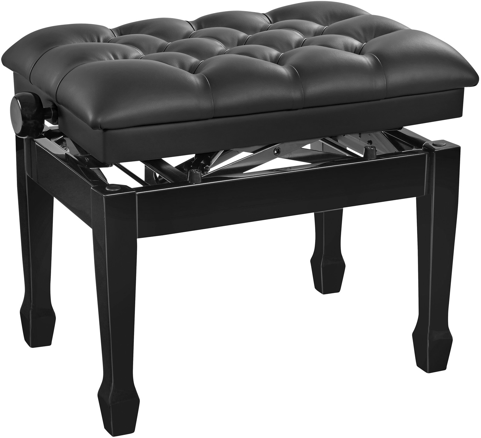 Ce banc de piano confortable, doté d'un large coussin, est équipé de ressorts pneumatiques haute performance.