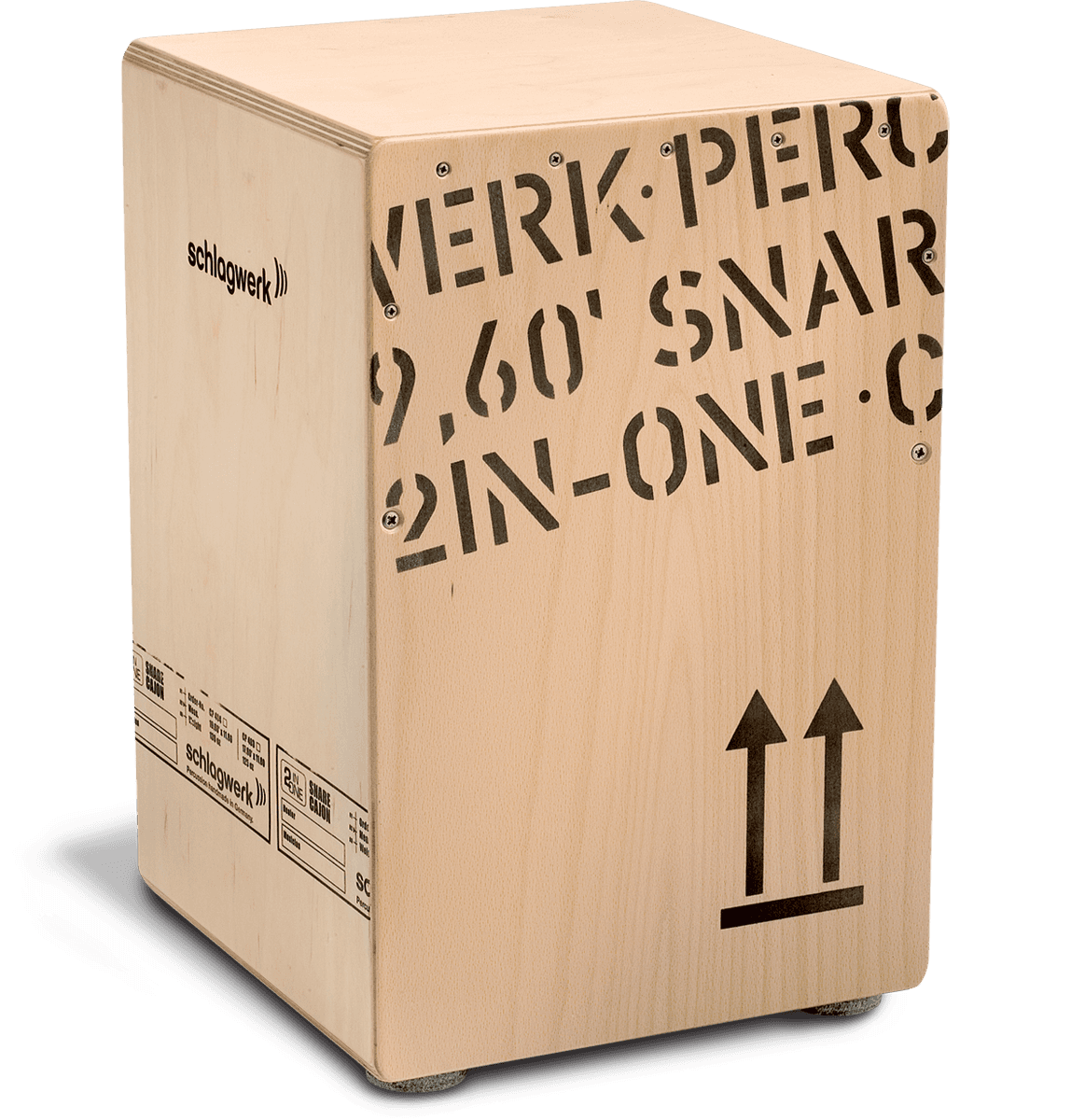 Fonctionnement : à l’intérieur du cajon, des brins appuient avec un angle précisément défini sur la surface de frappe. En jouant sur la surface de frappe, les brins se mettent à vibrer ce qui génèrent le son moderne de timbre cajon. Les brins du cajon 2inONE peuvent en outre être retirés d’un tour de main. Le cajon produit alors le son cubain traditionnel.