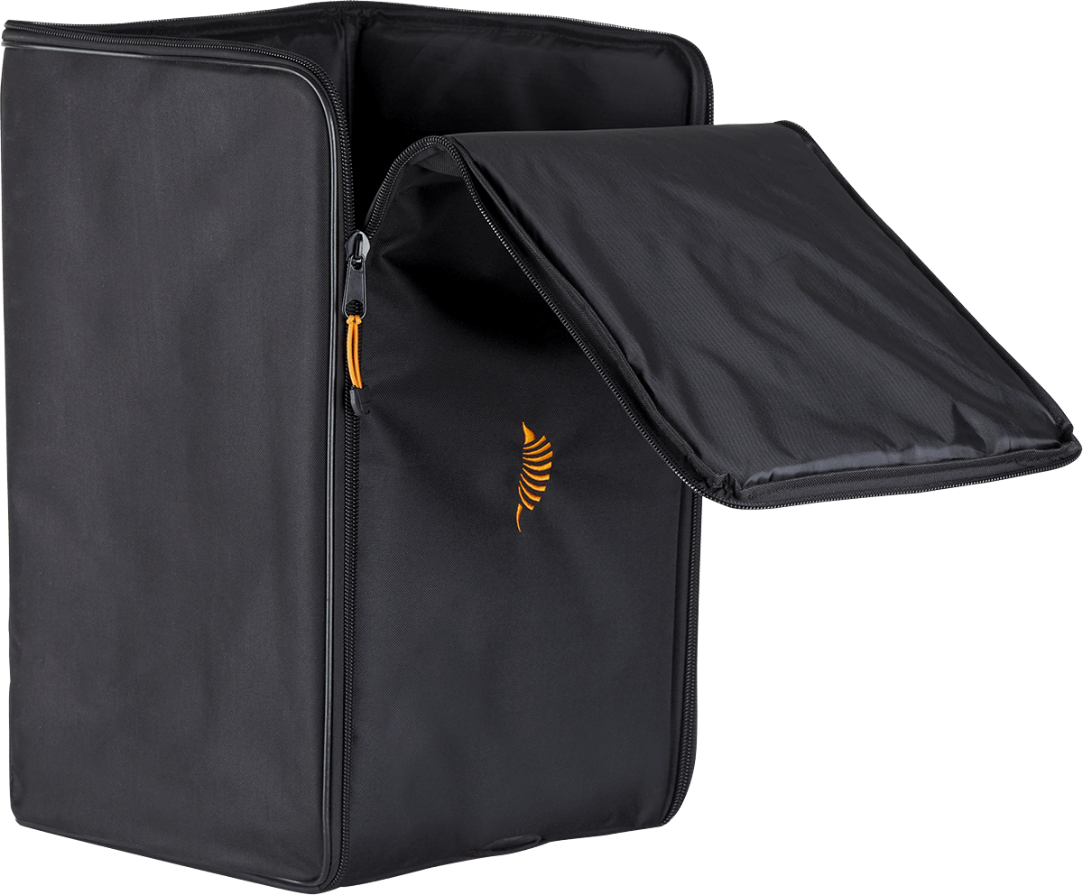 La fermeture éclair de la housse est disposée pour permettre une ouverture en clapet, ce qui permet de ranger rapidement et facilement votre Cajon après vos performances de percussions.