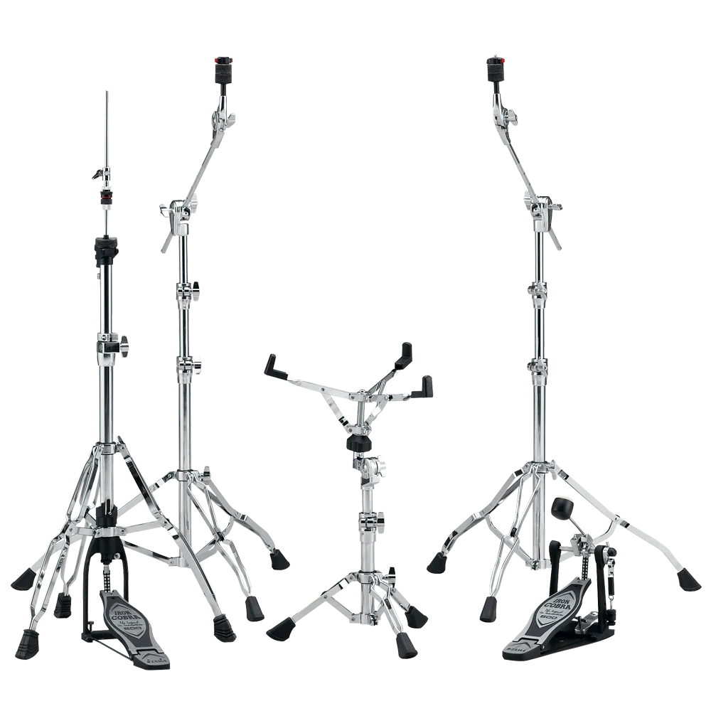 - Ensemble complet et homogène: 2 pieds de cymbale perche HC83BW, stand caisse claire HS80W, pédale de grosse caisse Iron Cobra HP600D et pédale de hi-hat HH605.