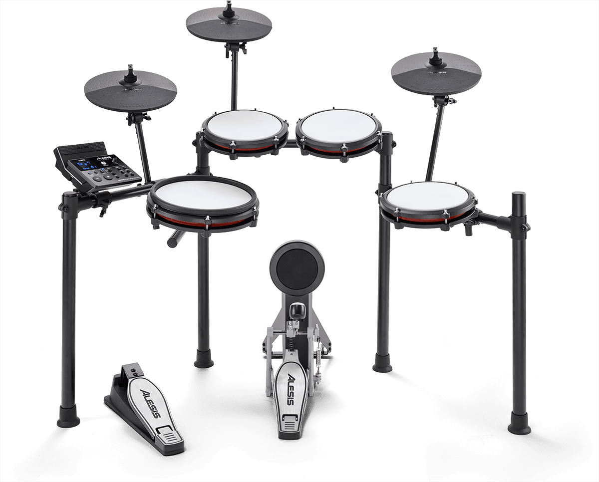 Le kit Nitro Max comprend tout ce dont vous avez besoin pour commencer à jouer de la batterie immédiatement, le tout dans un design léger, compact et élégant. Un câble serpent résistant, des baguettes de batterie et une clé de batterie sont inclus. Il y a aussi une pédale de grosse caisse Alesis à batteur unique de haute qualité, et une pédale de contrôle de charleston expressive. Les pads de batterie, les cymbales et le module sont tous montés sur un rack à quatre montants qui reste solide quelle que soit l'intensité de votre jeu. Déjà compact, le Nitro Max peut même être replié encore plus petit pour un rangement facile, parfait pour les chambres, les salons, les salles de jeu ou toute autre zone où l'espace est limité.