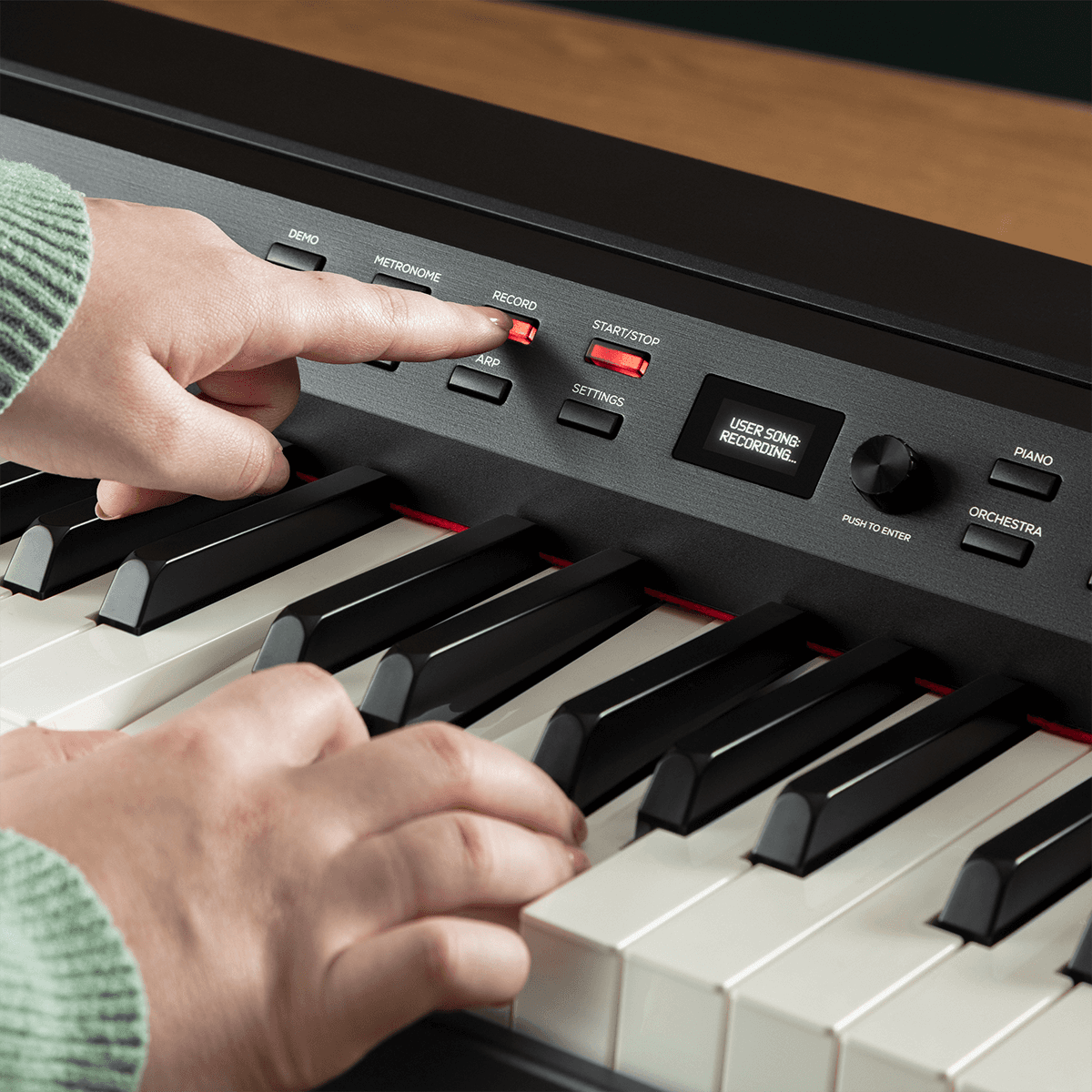 Le Prestige Artist est doté d'un pupitre de commande intuitif intégrant un écran OLED, qui présente toutes les fonctionnalités essentielles pour apprendre, s'entraîner et se produire. Les voix intégrées peuvent être superposées et/ou divisées pour produire un riche son d'ensemble. Le mode Leçon divise le clavier en deux zones ayant la même hauteur de son et la même voix, ce qui est parfait pour les élèves qui veulent suivre leur professeur de piano ou faire un duo avec un autre musicien. Le mode enregistrement permet aux musiciens d'enregistrer puis de réécouter leur performance, tandis que le métronome intégré les aide à rester dans le temps. Pour des prestations plus importantes, les sorties jack 6,35 mm stéréo permettent de se connecter à n'importe quelle table de mixage ou amplificateur actif. Pour une pratique discrète, branchez un casque à l'une des prises casque en façade (au format jack 6,35 mm et minijack 3,5 mm) pour couper automatiquement le son des haut-parleurs.Des logiciels pédagogiques pour chaque musicien.Que vous soyez débutant au piano, que vous cherchiez à améliorer votre piano numérique actuel ou que vous repreniez l'instrument après une longue pause, le Prestige Artist propose une grande variété de solutions logicielles pédagogiques pour s'adapter au style d'apprentissage de chaque musicien. Les 60 leçons gratuites incluses de Melodics proposent de la musique issue des tendances actuelles afin de fournir aux joueurs un retour instantané sur leur performance. Les 3 mois de Skoove Premium inclus offrent des cours de piano en ligne approfondis qui s'adaptent aux musiciens et leur donnent des conseils pour améliorer leur jeu. Enfin, la série Prestige intègre également 2 mois de leçons vidéo en direct via le programme TakeLessons | Live, de plus en plus populaire.- Accessoires inclus : pédale de sustain, alimentation secteur, pupitre