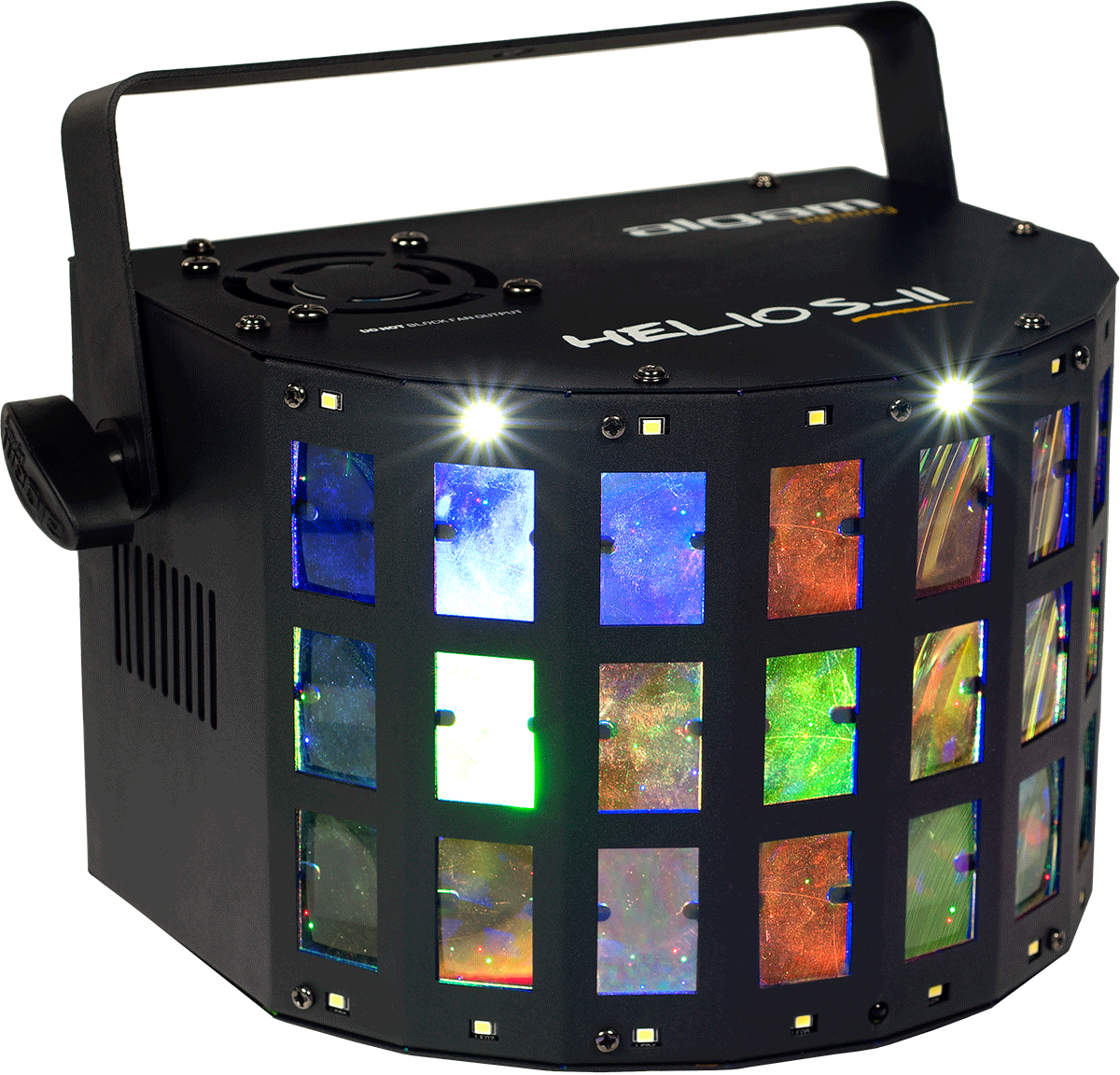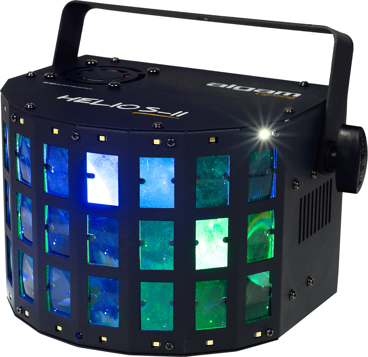 2-en-1 derby, stroboscope Le Helios II d'Algam Lighting est la solution parfaite pour animer vos événements privés ou vos prestations en toute simplicité. Ses 4 LED RGBW de 3W, associées à 16 LED blanches pour l'effet stroboscope, vous permettront de créer une ambiance festive et colorée en quelques instants, à un tarif très abordable.