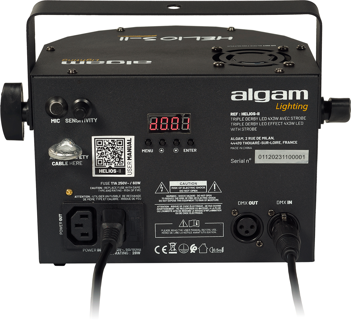 Le Helios II a été pensé pour être immédiatement exploitable, sans configuration longue et fastidieuse. Grâce à la télécommande livrée ou via l'écran numérique du produit, choisissez en quelques instants le mode de fonctionnement souhaité entre Automatique, Automatique à Détection Musicale, mode Derby uniquement, mode Strobe uniquement, changez les couleurs et ajustez la vitesse du programme comme vous le souhaitez ! Pour les utilisateurs plus avertis et souhaitant une prestation plus personnalisée, le Derby présente une interface DMX fonctionnant sur 1 ou 4 canaux, idéale pour paramétrer précisément les couleurs, la vitesse du moteur, le stroboscope et les scénarios.- Specs complémentaires :