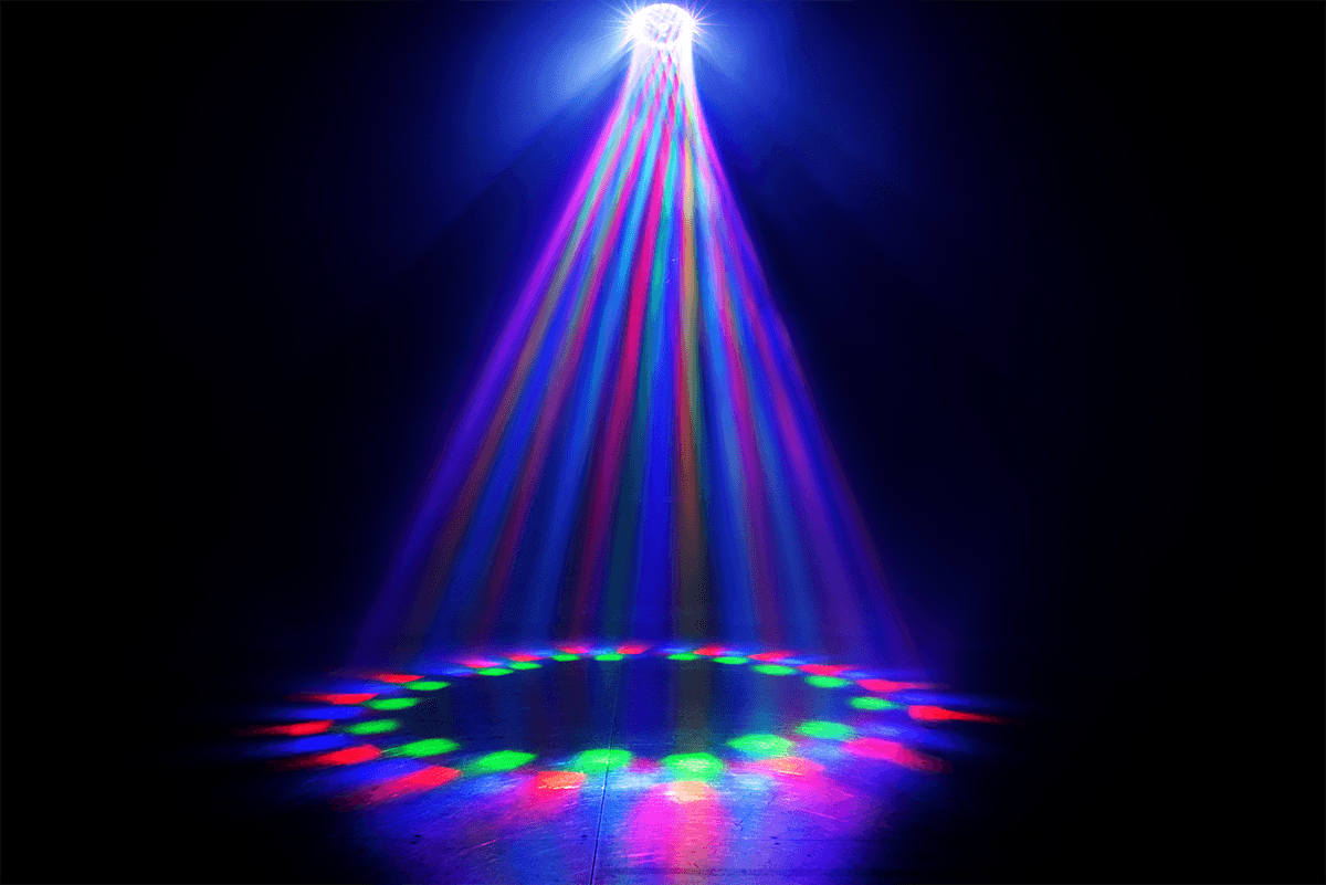 * Effet soleil : 18 x LED 3W RGB avec prisme rotatif