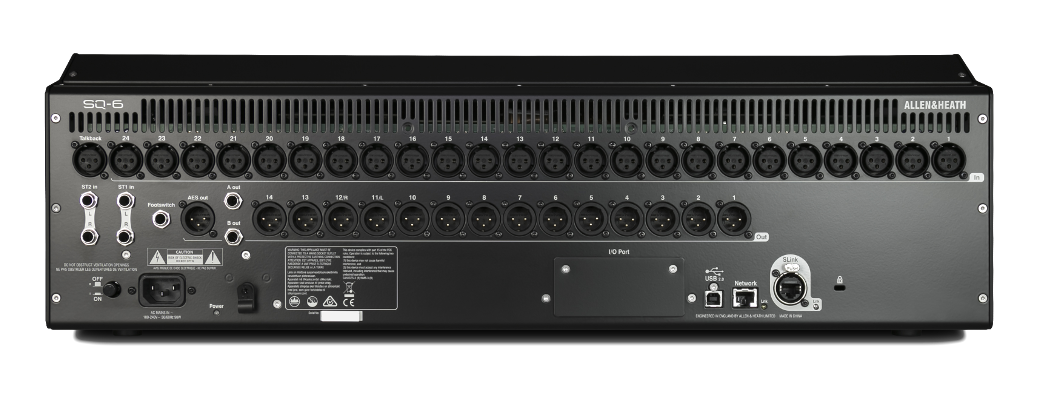 Les SQ embarquent toutes les entrées/sorties nécessaires pour un fonctionnement autonome. Grâce à son port intelligent SLink, les SQ peuvent également être étendu jusqu'à 48 entrées micro au total, via la famille de boîtiers de scène numériques et d'expandeurs 48 kHz (AR2412, AR84 & AB168) et 96 kHz (DX168), ce qui lui permet d'offrir une solution flexible et combinable pour les utilisateurs d'autres systèmes numériques Allen & Heath. Il est également possible de connecter une SQ directement à une autre SQ, ou même à un système dLive.