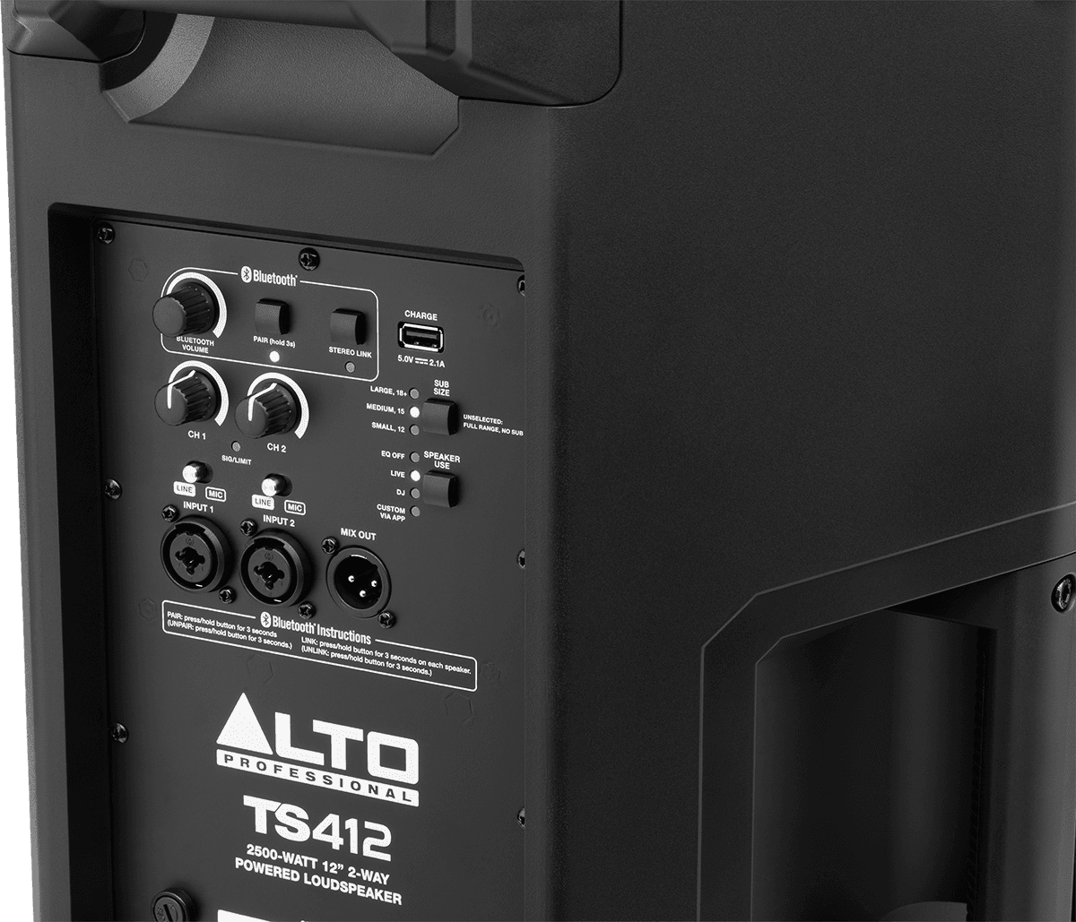 Avec leur système DSP et leur module Bluetooth intégré, les TS4 vous permettent d’ajuster le rendu acoustique finale de l’enceinte avec une grande précision, via le mode DSP « Custom via App » et l’application gratuite Alto Pro. Disponible pour Android et iOS, cette application permet de contrôler à distance le niveau du canal Bluetooth, les modes Speaker Use, l'égalisation 6-bandes personnalisée et la sélection de la taille du subwoofer. De plus, la liaison stéréo True Wireless peut être configurée à distance via l'application pour gagner du temps lors de la configuration.