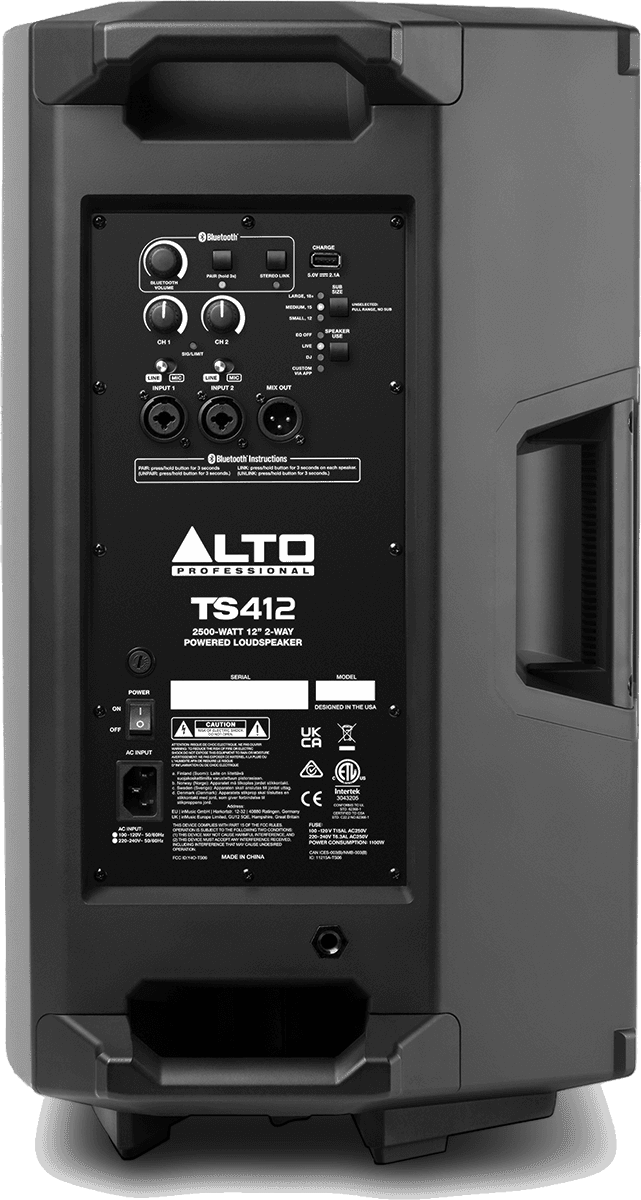 Dans la lignée du formidable succès de la série TS3, ces nouvelles enceintes présentent une puissance accrue allant jusqu’à 1250W RMS (pour les TS412 et TS415) intègrent un tout nouveau circuit DSP afin d’obtenir un son de haut niveau pour n’importe quelle application, ainsi qu’un module Bluetooth autorisant le streaming audio via un appareil Bluetooth compatible, la liaison entre deux enceintes et le contrôle des enceintes via l’application gratuite Alto App.