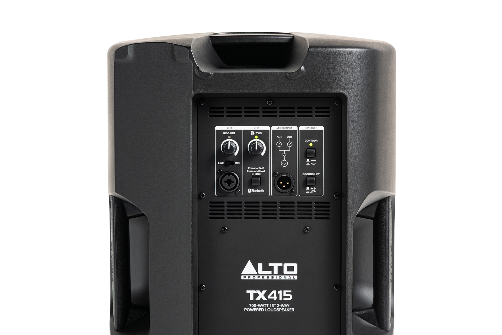 Conçue pour une utilisation intuitive, la TX415 offre un contrôle simplifié de votre musique. Ses commandes claires et accessibles vous permettent d'ajuster le volume de chaque canal, d’appairer rapidement un périphérique Bluetooth compatible et d'activer l'égaliseur Contour EQ pour une correction rapide du rendu sonore. Simplicité et efficacité sont les maîtres mots de cette enceinte polyvalente.- Amplification : Actif (amplifié)