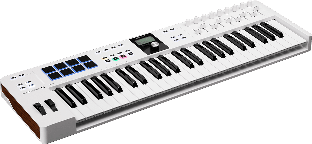 Keylab Essential 3 49 touches blanc Créer de la musique dans le monde numérique n’est pas toujours simple. Trop d’éléments peuvent facilement nous distraire et il est nécessaire d’apprendre un grand nombre de fonctions. Fort de ce constat : Keylab Essential va à l’essentiel et vous permet de vous concentrer sur le plus important. Ces nouveaux claviers de contrôle affichent une fabrication respirant la qualité tout en offrant un aspect résolument moderne. La maxime d'Arturia : 1 bouton pour 1 fonction est également présente sur ces nouveaux claviers qui ne manquent pas de charme.