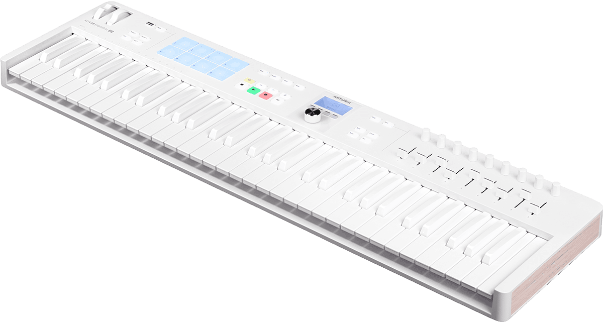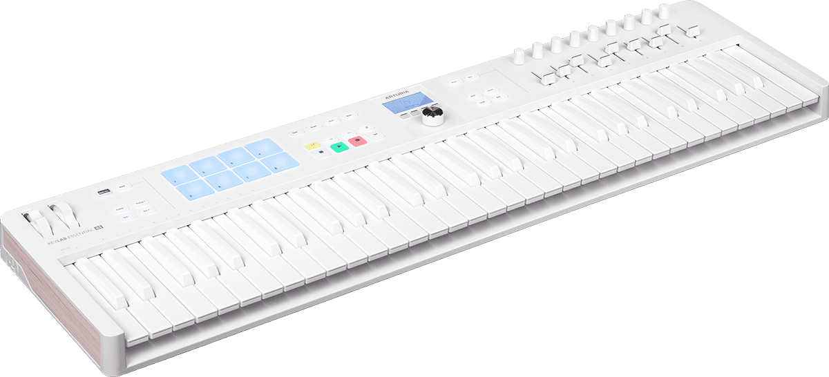 Pour les producteurs et les musiciens en quête d’un look moderne pour leur setup, le KeyLab Essential mk3 comprend un sublime châssis et clavier entièrement blancs agrémenté de pads RGBaux couleurs pastels.