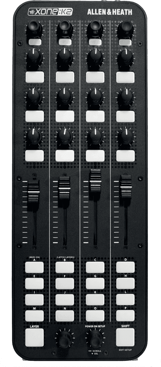 Le Xone: K2 est un contrôleur pour tout logiciel DJ, élégant, et compact. Avec pas moins de 52 moyens de contrôles fournissant jusqu'à 171 commandes MIDI sur 3 couches - en plus de la possibilité de "linker" plusieurs unités, le Xone:K2 possède la puissance et la flexibilité pour accéder les fonctions essentielles, et même les nuances les plus infimes de n'importe quel logiciel.