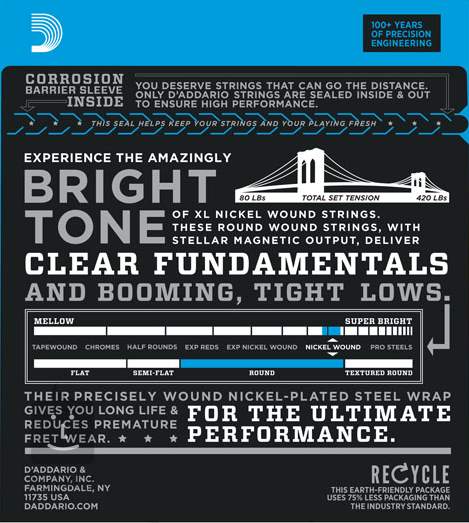 Les cordes D'Addario XL avec filet en nickel pour basses sont mondialement renommées comme le choix idéal pour les joueurs de basses dans tous les genres et tous les styles. Toutes les cordes XL sont filées avec précision par nos machines à commande numérique exclusives, garantissant ainsi une tonalité excellente, des fondamentales claires et une régularité sans égal. Chaque corde est filée avec un fil d'acier plaqué nickel qui offre un son clair et significatif ainsi qu'une excellente puissance magnétique pour une tonalité attrayante et versatile qui saura convenir à tous les styles de jeu.