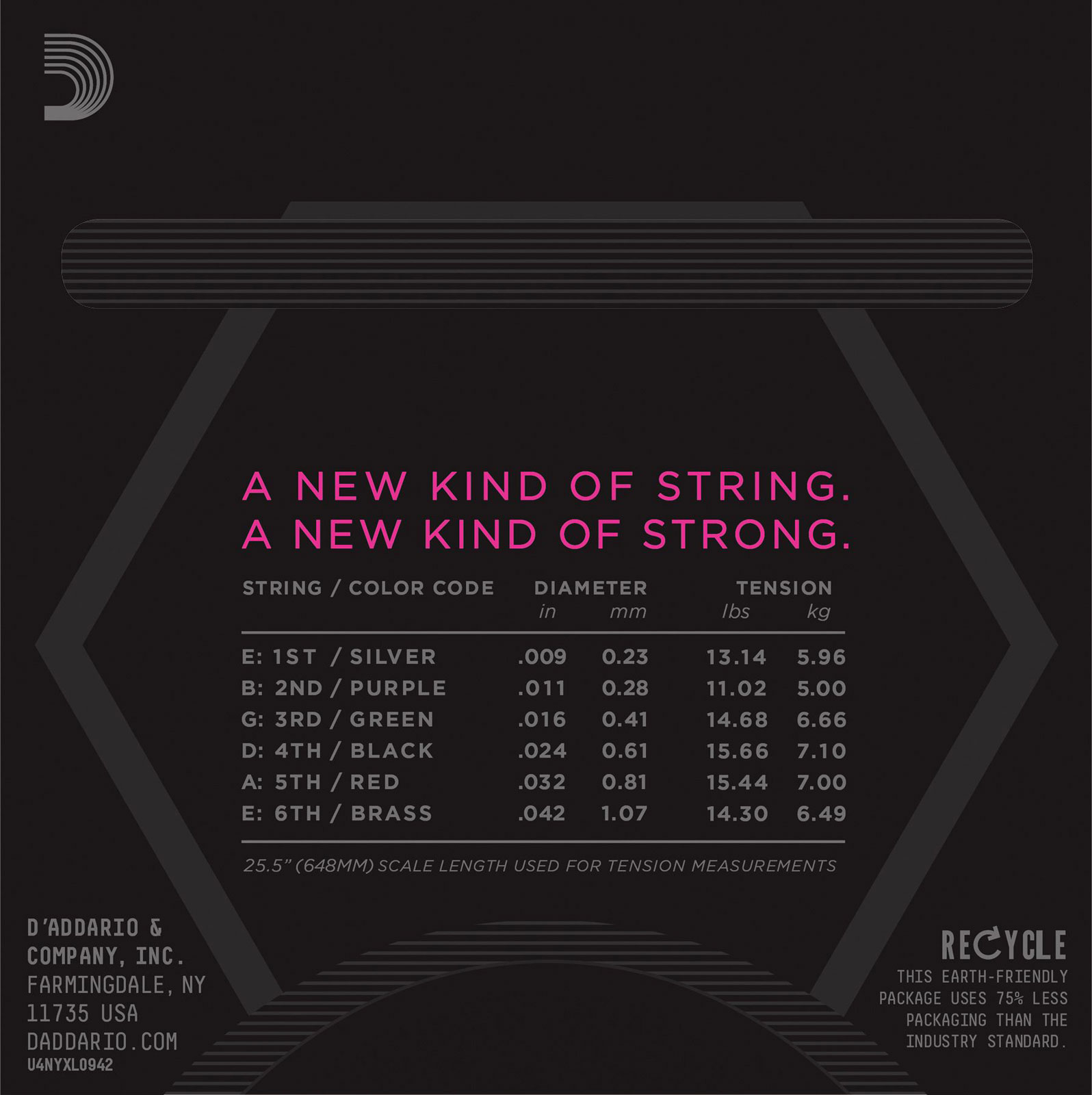 Les NYXL0942 sont conçues pour une flexibilité maximale: Acier Plein .009, .011, .016, Filées Nickel .024, .032, .042