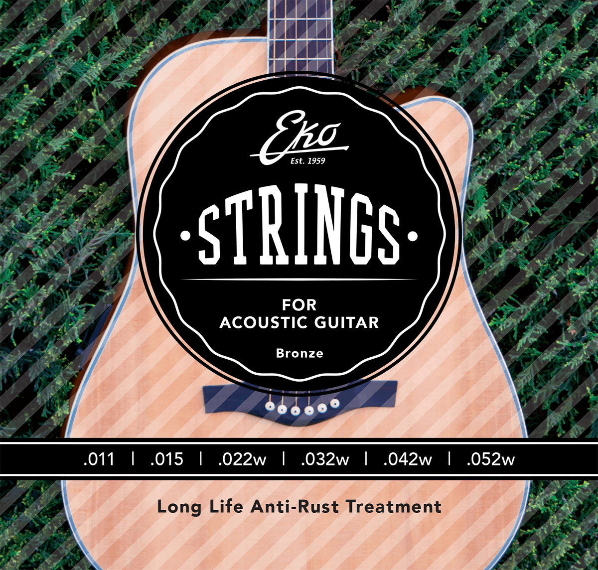 Medium Light 11-15-22-32-42-52 En plus de proposer ses guitares à l'esprit résolument italien, la marque EKO propose aussi une gamme étendue de jeux de cordes pour guitares acoustiques, électriques, classiques, mais aussi pour basses acoustiques, électriques, ainsi que pour les ukulélés.
