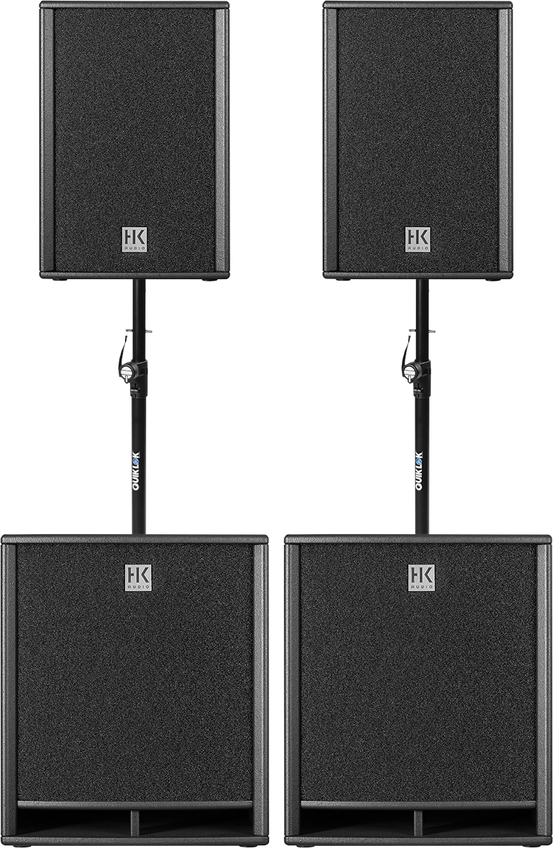 Système passif comprenant 2 enceintes PR:O 12, 2 subwoofers PR:O 18 S, 2 mâts QUIK LOK. Conseillé jusqu'à 250 personnes.