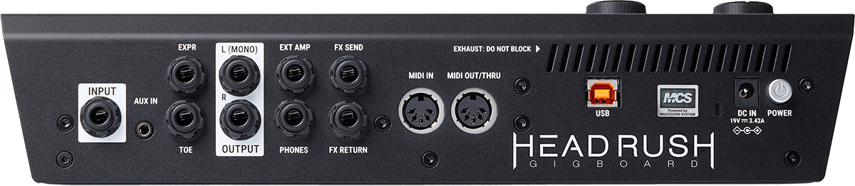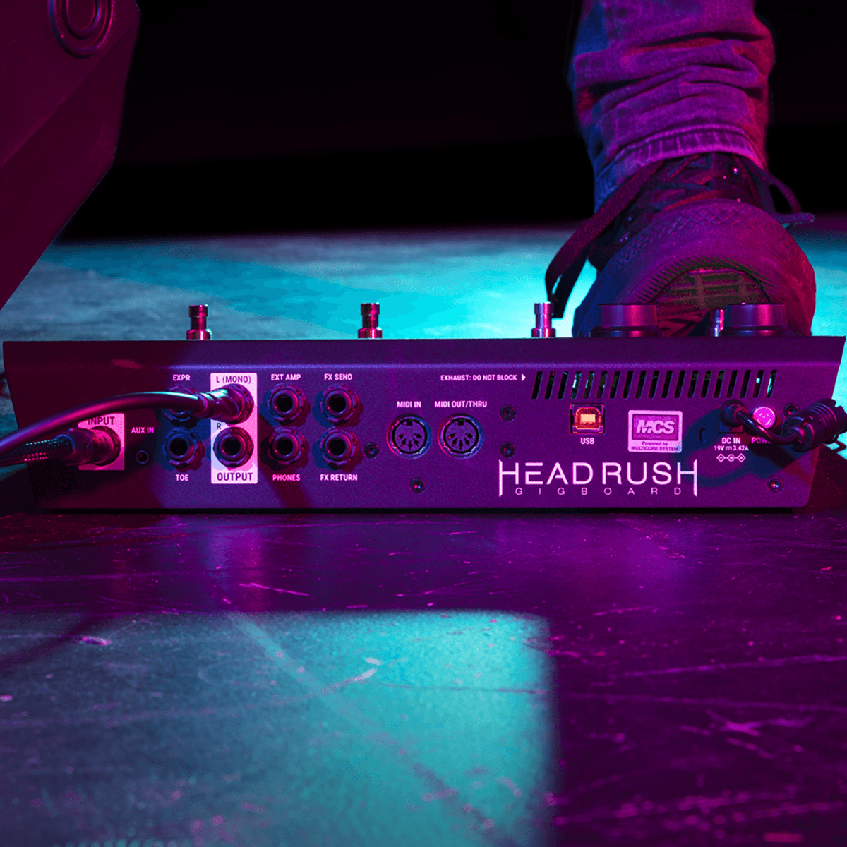 Logé dans un châssis en acier compact et robuste, le Gigboard d'HeadRush comprend de nombreuses fonctions bien pensées pour une utilisation sur scène, y compris une fonction setlist, et 4 commutateurs au pied avec chacun un bandeau Led de couleur assignable et un écran Oled qui indiquent l'état de chacun de vos rigs.Les entrées/sorties