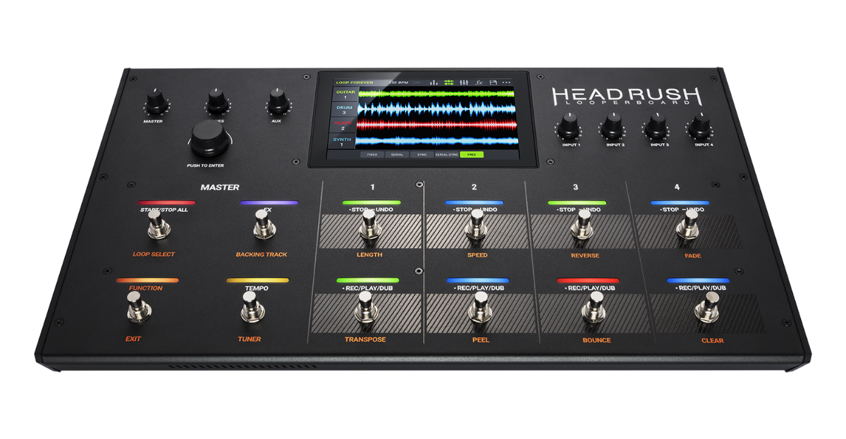 Les 12 commutateurs au pied intégrés vous permettent de rapidement créer et transformer vos boucles, et ils sont également équipées de LEDs RVB individuelles qui se mettent à jour en temps réel procurant un feedback bien utile. Vous pouvez enregistrer, doubler, jouer, défaire/refaire, inverser, transposer, et décortiquer chacune de vos couches, dans l’ordre inverse de leur ajout, estomper et supprimer les pistes de looper individuelles, le tout instantanément. Vous pouvez aussi inverser, estomper, multiplier ou diviser leur longueur et multiplier ou diviser instantanément la vitesse de lecture de votre boucle toute entière, d’un seul coup. Chaque boucle comprend 4 pistes de looper mono ou stéréo qui peuvent être activées dans n’importe lequel des 5 modes (Fixed, Serial, Sync, Serial/Sync et Free) pour que le Looperboard d’HeadRush s’adapte au jeu de tous les musiciens. Le Looperboard HeadRush peut enregistrer et jouer plus de 8 heures d’audio via sa capacité de stockage interne, et vous pouvez également exporter vos boucles pour un usage ultérieur en utilisant les ports SD et USB.Effets premium et timestrech