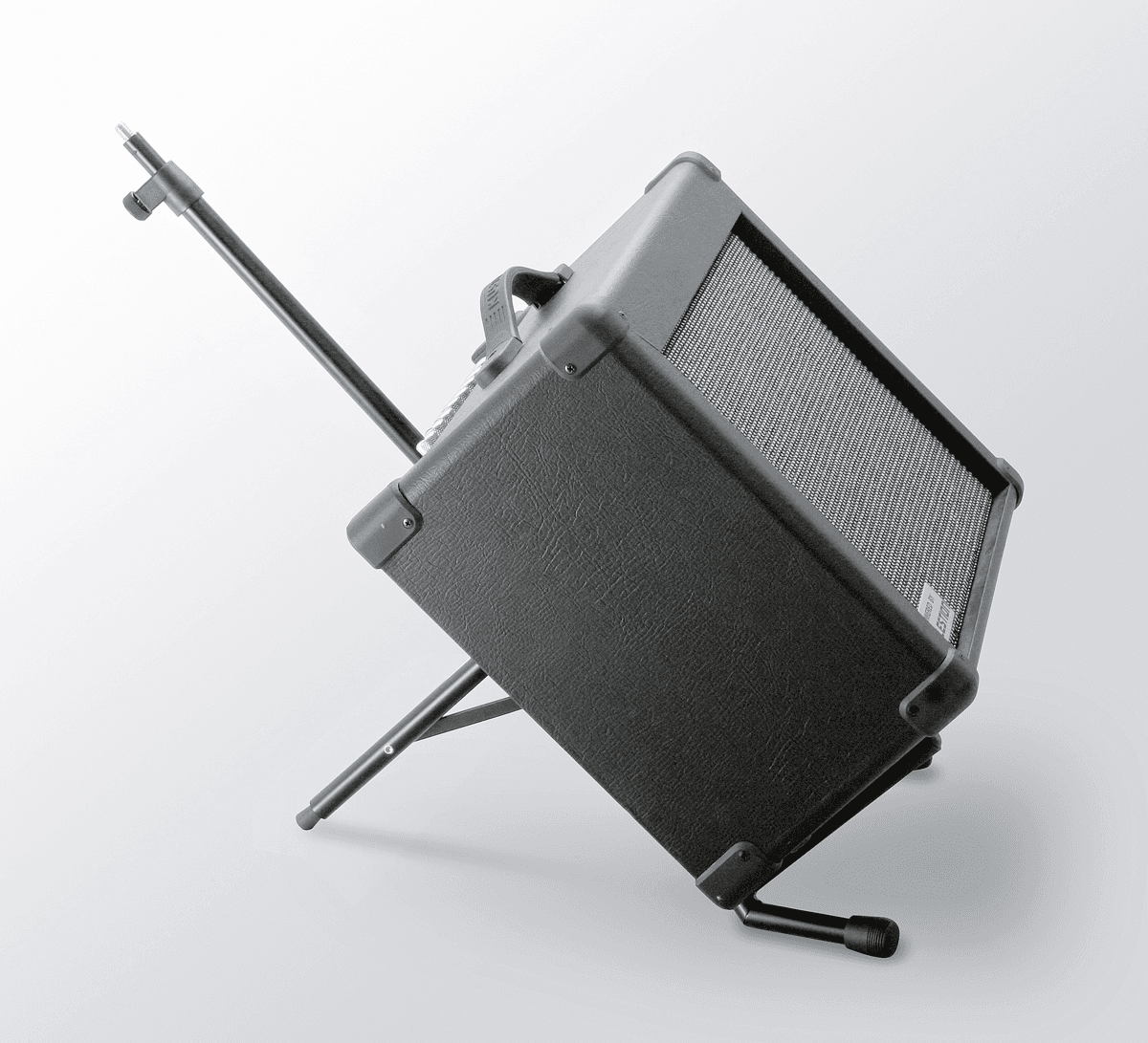 Inclinaison ajustableSupport pliable permettant de maintenir un amplificateur, une enceintes ou moniteur. Les pieds avant inclinés améliorent considérablement la stabilité et la résistance du stand. Le centre de gravité bas permet un maintien sécurisé d'amplis de grand format. Un microphone peut être fixé au tube télescopique à l'aide d'une perche à filetage de 3/8" ou 5/8".