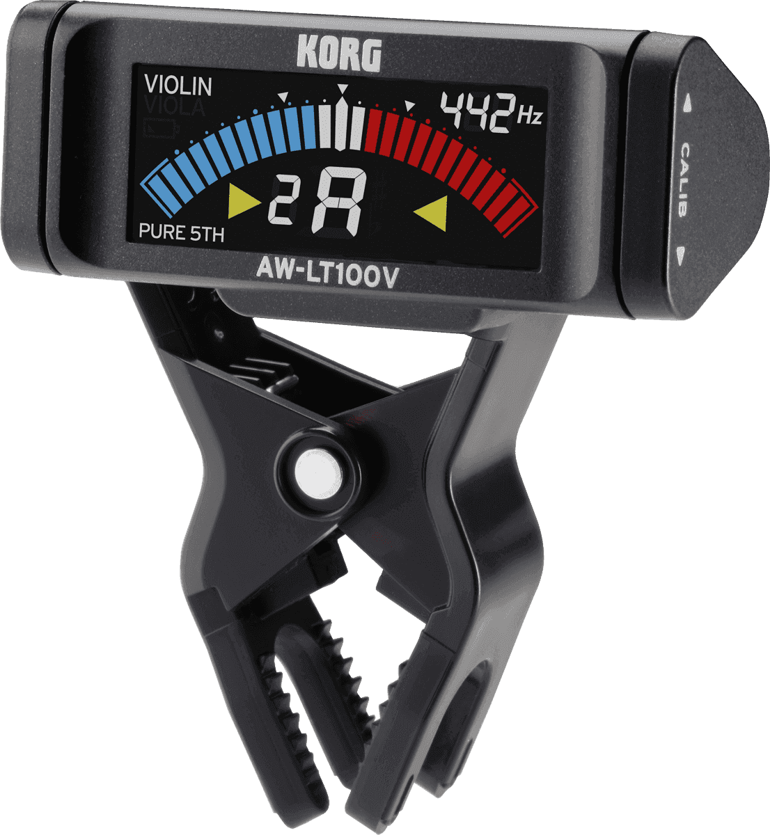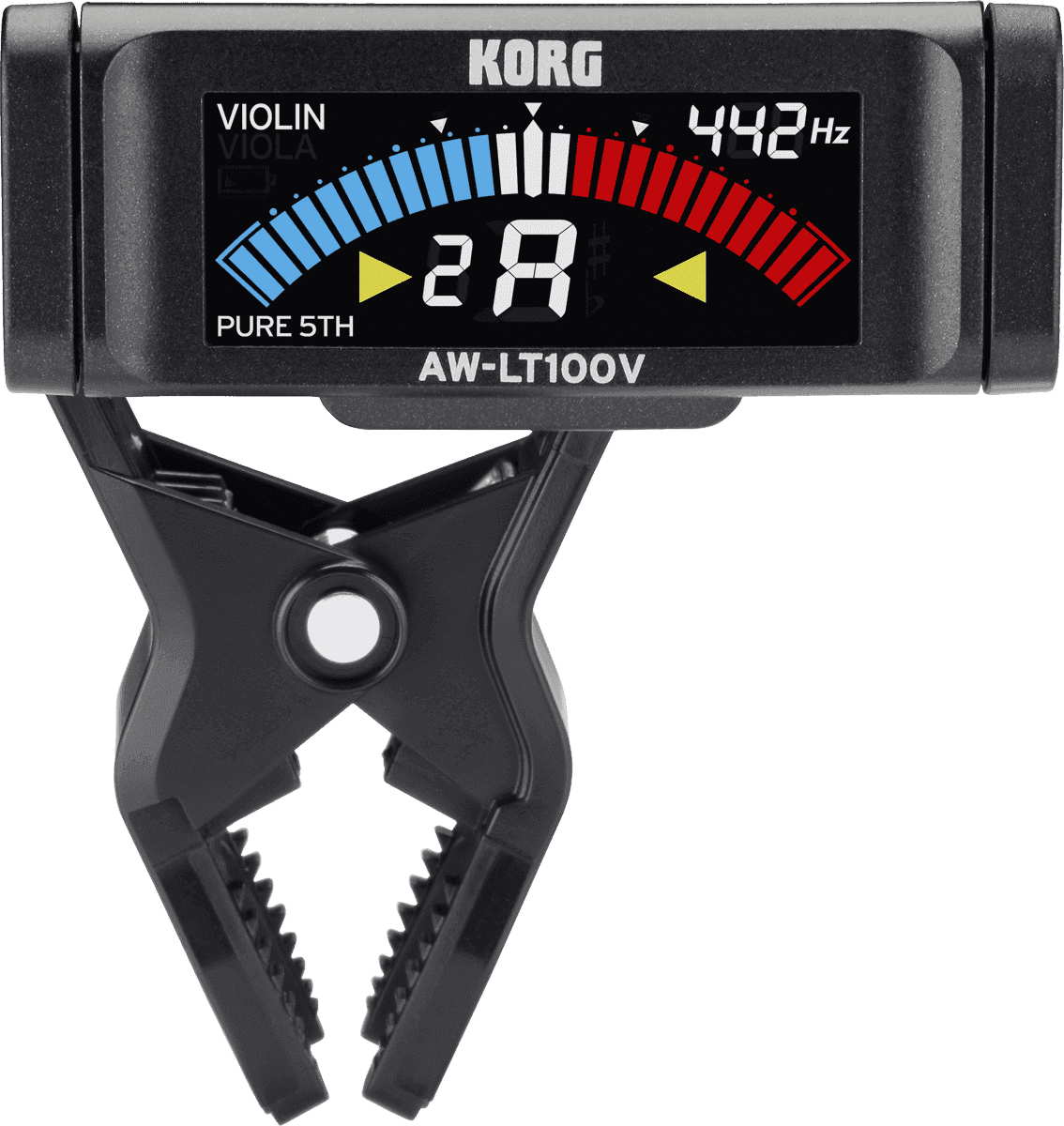 Les accordeurs à pince KORG de la gamme AW-LT100 peuvent être attachés directement à votre instrument pour un accord facile et précis. Ces accordeurs complets contiennent tout ce dont vous avez besoin pour accorder dans de bonnes conditions. Ils disposent d’un affichage LCD couleur ainsi qu’une nouvelle fonction d’accord ultra-précis de ± 0,1 centième. L’autonomie de la pile a été améliorée pour durer 12 fois plus longtemps que sur les accordeurs précédents de la série Dolcetto, offrant environ 100 heures de fonctionnement continu (avec une pile LR-03). Cette nouvelle série AW-LT100 comprend 5 modèles, décrits plus bas.