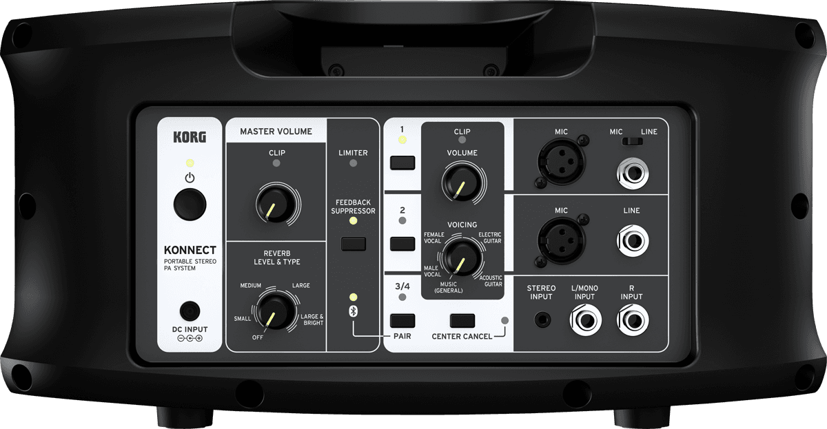 Le système KONNECT est, quant à lui, un système de sonorisation stéréo portable tout en un qui offre une solution complète pour la sonorisation mobile. Cette mini-sono unique dispose de tout ce dont vous avez besoin pour les événements qui demandent une flexibilité dans les déplacements et la disposition : spectacles, café-concerts, soirées, studios de danse, expositions, séminaires ou présentations... D'une clarté incomparable, le KONNECT délivre à la fois un son grave et puissant. Son excellente conception offre un son de qualité et une puissante bluffante vis-à-vis de sa taille (180W). Il inclut différentes fonctionnalités comme des presets d'EQ adaptés à toutes les sources ou encore une connectivité Bluetooth permettant le contrôle sans fil à partir de votre smartphone ou tablette ou la lecture musique.