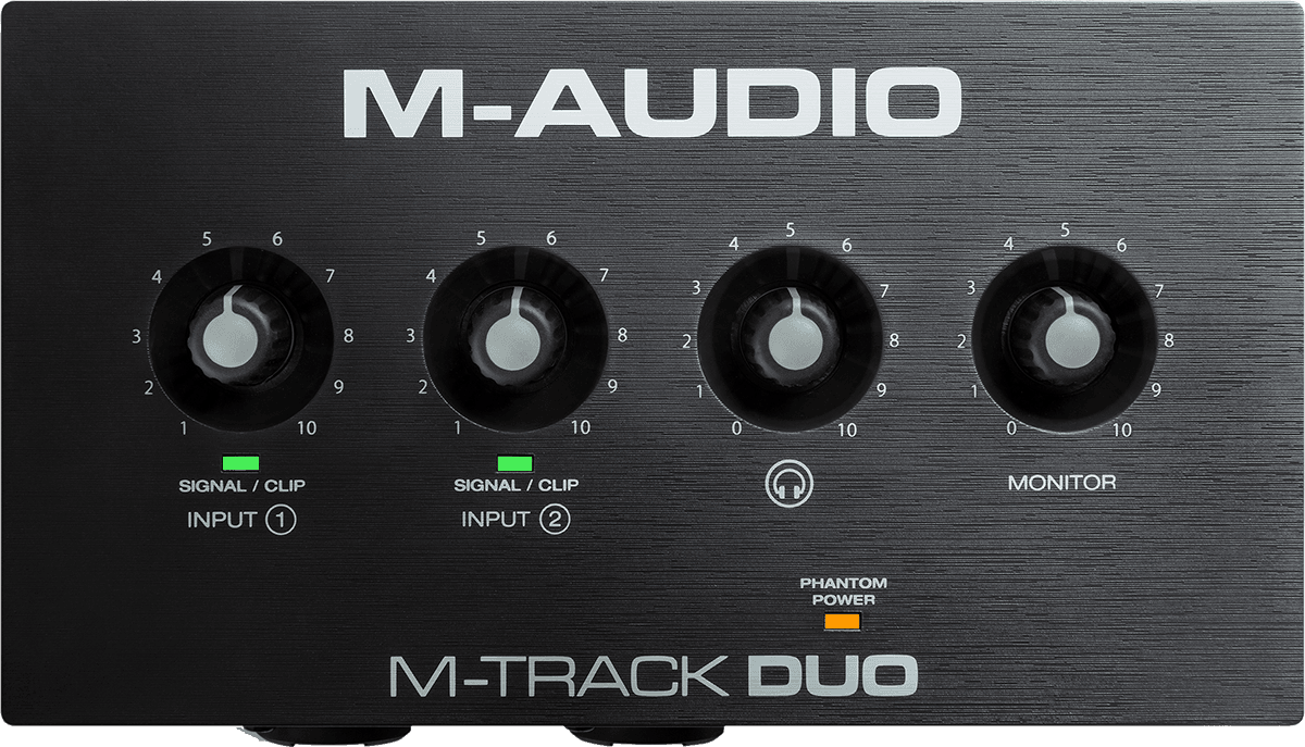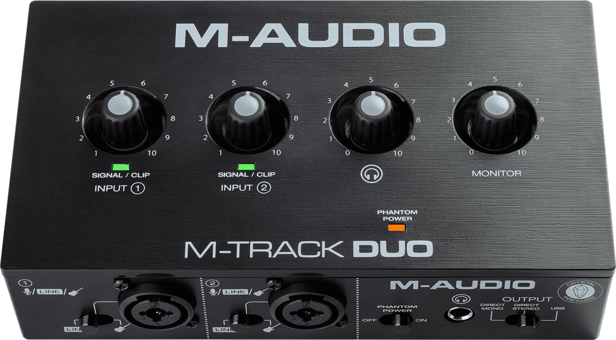 La M-Track Duo est une interface audio des plus compactes, mesurant seulement 19 cm de large pour 11 cm de profondeur, et juste 5,5 cm de hauteur. Avec de telles mensurations, elle passerait presque inaperçu sur un bureau ! Mais sous ce petit gabarit se cachent deux péamplis Crystal très transparents développés par M-Audio, assurant le traitement du signal des deux entrées combo XLR/jack, assistés par des convertisseurs analogiques/numériques 24 bits/48 kHz pour un rendu des plus précis.