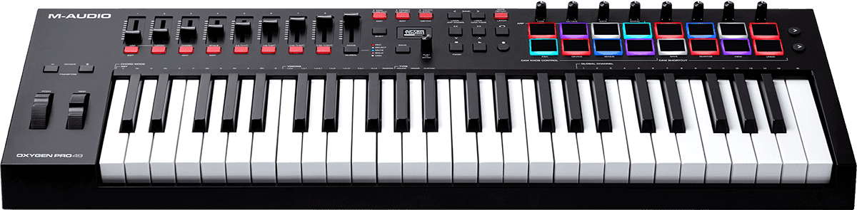 Vous avez envie de rejoindre le camp des professionnels avec un clavier de qualité, proposant de nombreuses fonctionnalités et un minimum de tracas de programmation de nombreux logiciels ? Alors la gamme des claviers-maîtres Oxygen Pro de M-Audio est faite pour vous. L'Oxygen Pro 49, version à 49 touches grand format, met à votre disposition une quantité impressionnante de fonctionnalités et une suite logicielle très complète pour booster votre créativité, ainsi qu'un workflow très intuitif vous permettant de vous concentrer sur la seule chose qui importe : votre créativité.
