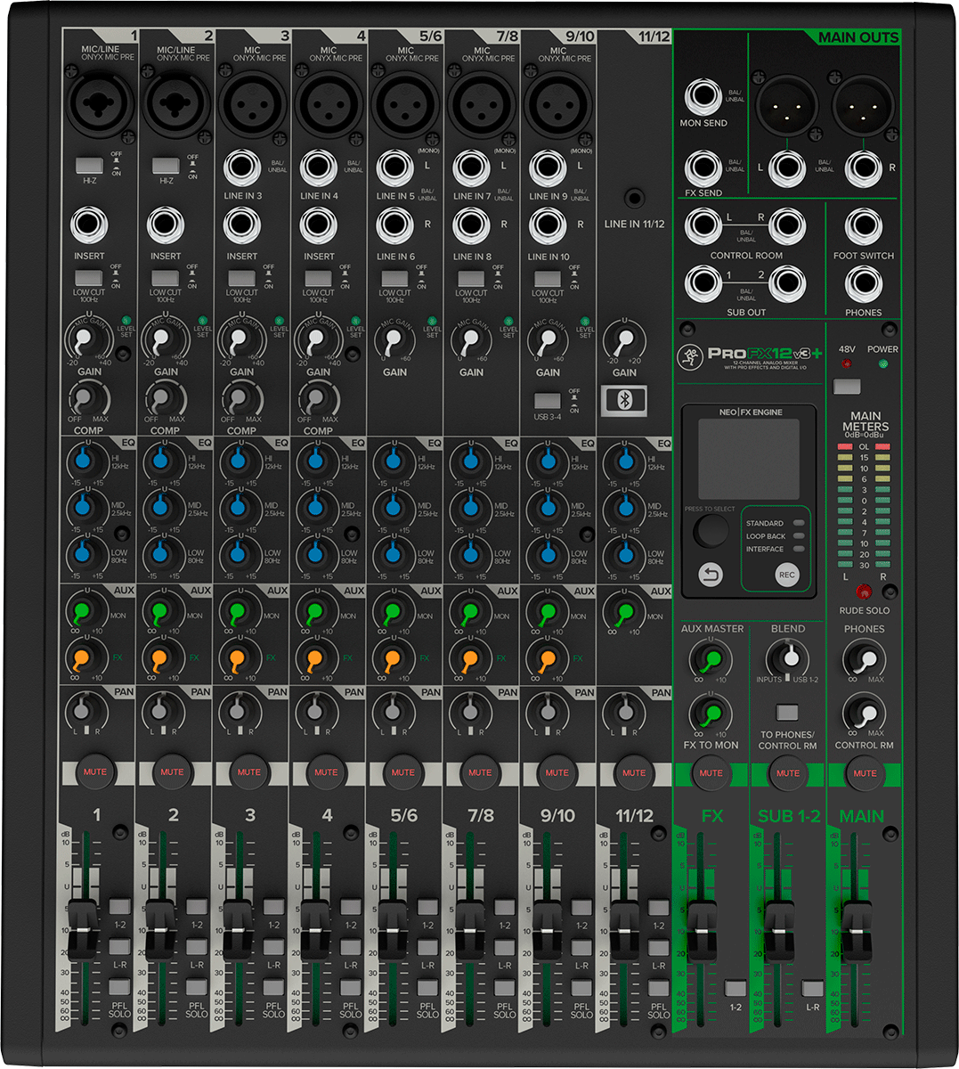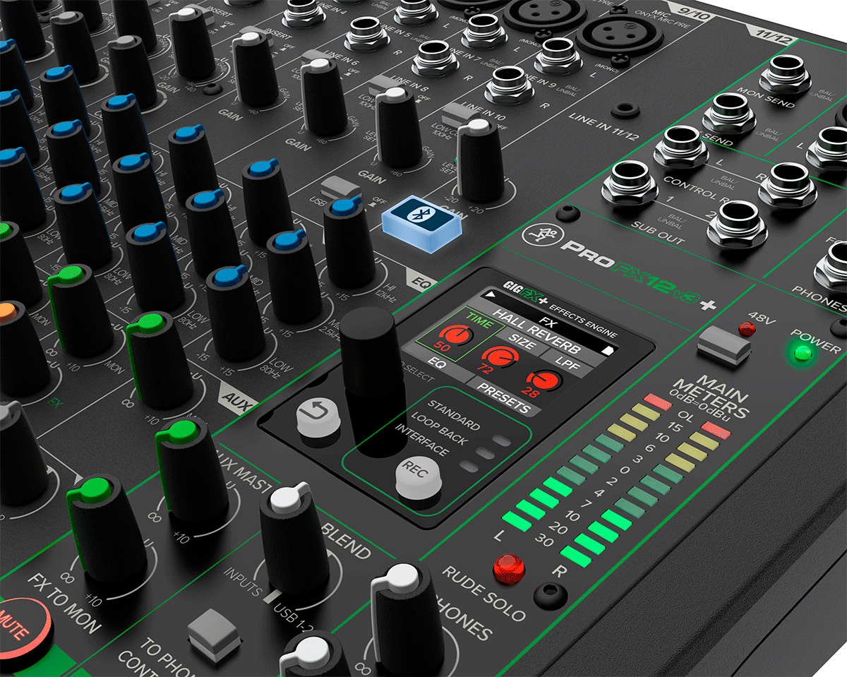 Améliorez votre son à l'aide des effets à haute résolution GigFX+, avec 12 presets que vous pouvez modifier et sauvegarder à la volée grâce au grand écran LCD. Combinant la chaleur d'une console d'enregistrement analogique avec des effets numériques précis, c'est un mixeur idéal pour les home studios et les événements en live.