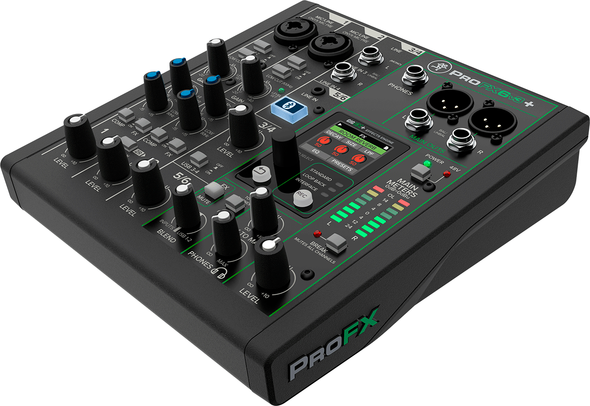 Le ProFX6v3+ est un mixeur analogique compact et une interface audio USB-C avec le cœur d'une console d'enregistrement de studio. Équipé de fonctions essentielles telles que compression à bouton unique, égaliseurs à 2 bandes, commutateurs de haute impédance (Hi-Z) et filtres coupe-bas à 100 Hz, c'est la parfaite pièce maîtresse pour votre studio.