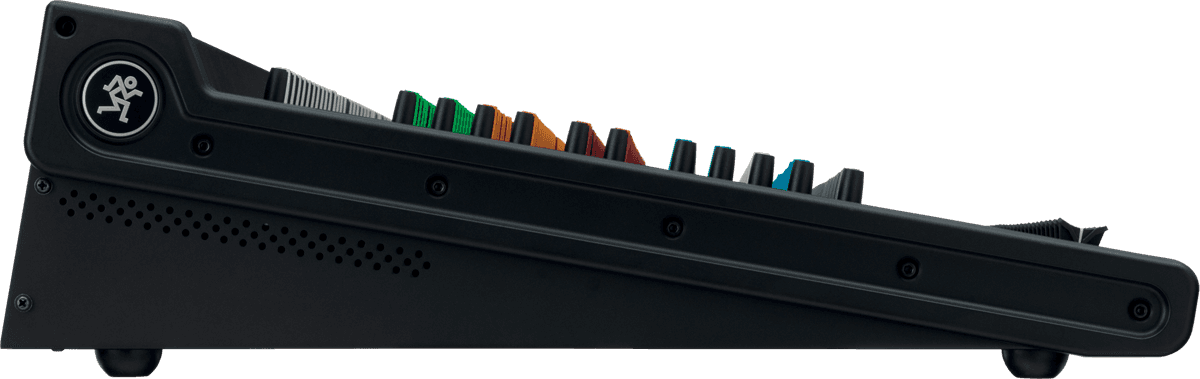 - Contrôle de volume, panoramique, mute et 6 départs Aux (dont 1 et 2 pre/post) par tranche