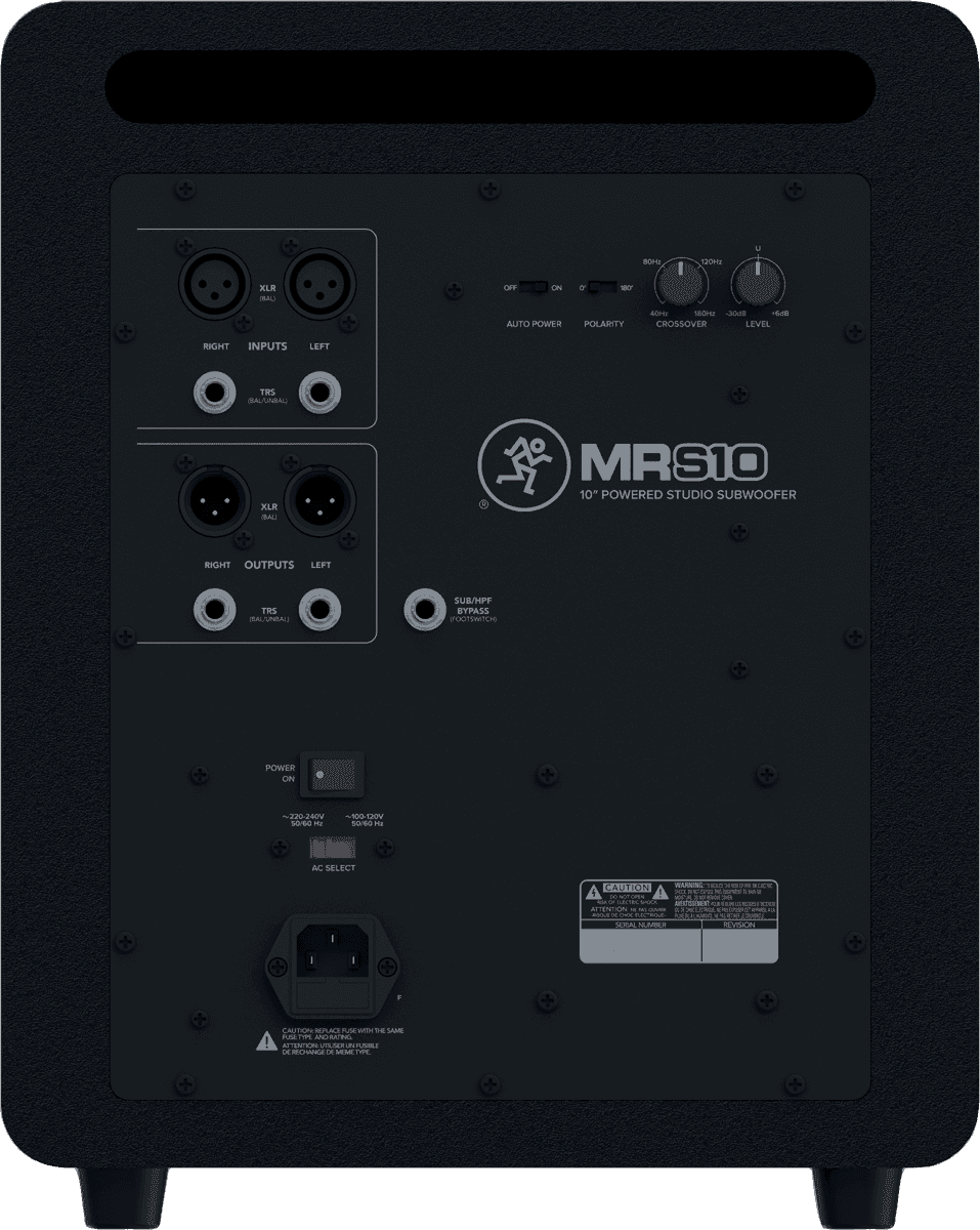 - Interrupteur au pied inclus : coupe le caisson et désactive le filtre ce qui permet une écoute à l'aide de vos enceintes de monitoring en mode large bande