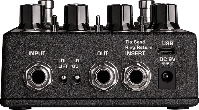 - Modélisateur d’amplis guitare + IR + Effets + Reverb + EQ + NR + Fx Loop + DI