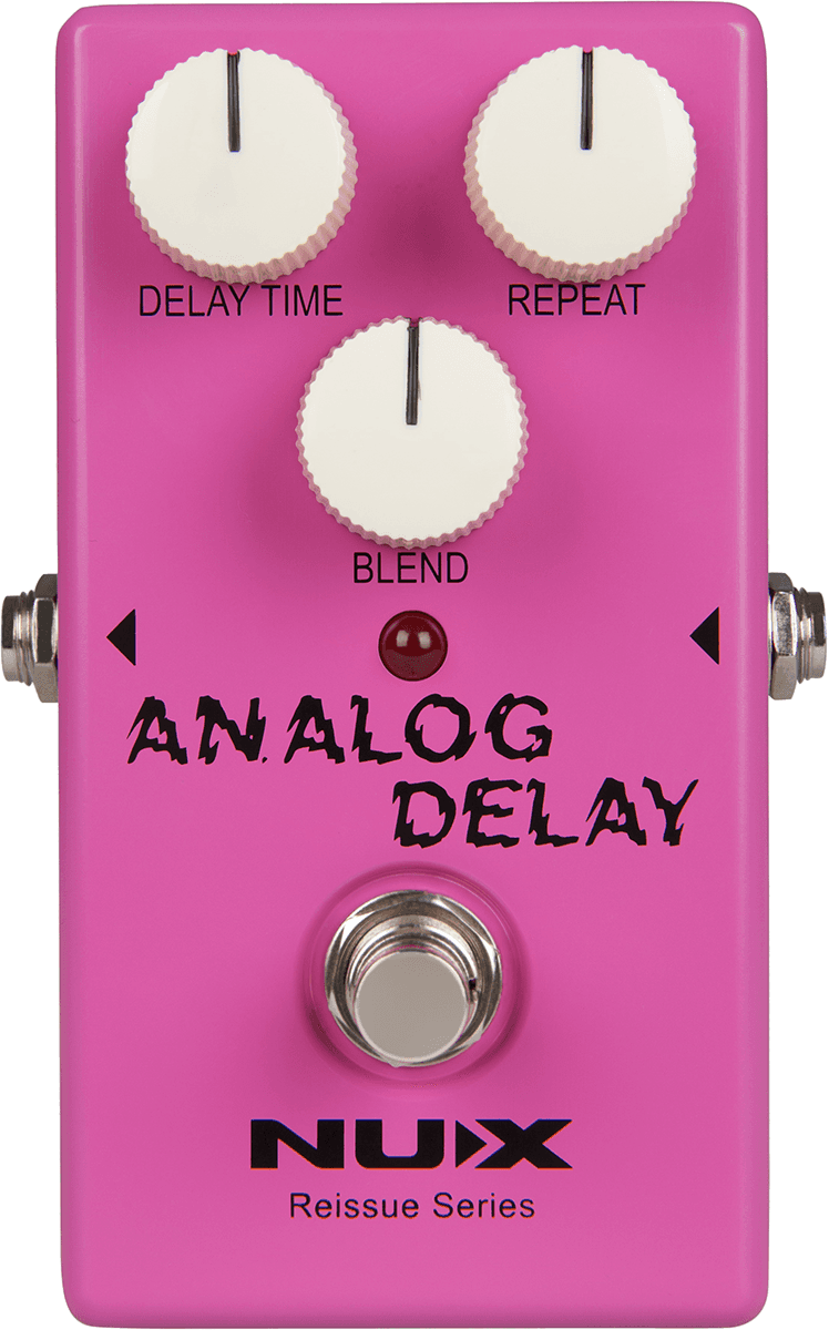 Analogique Bucket-Bridage vintage reissueSi vous êtes passionné des effets de délai limpide mais chaleureux que l'on retrouve sur bon nombre de chansons des années 80, le Nux Analog-Delay de la série Reissue est l'effet qu'il vous faut ! Il intègre un circuit 100% analogique Bucket-Brigade avec la puce 3205 BBD donnant le caractère si spécial des sonorités de cette époque apportant à la fois chaleur et clarté dans le rendu sonore.