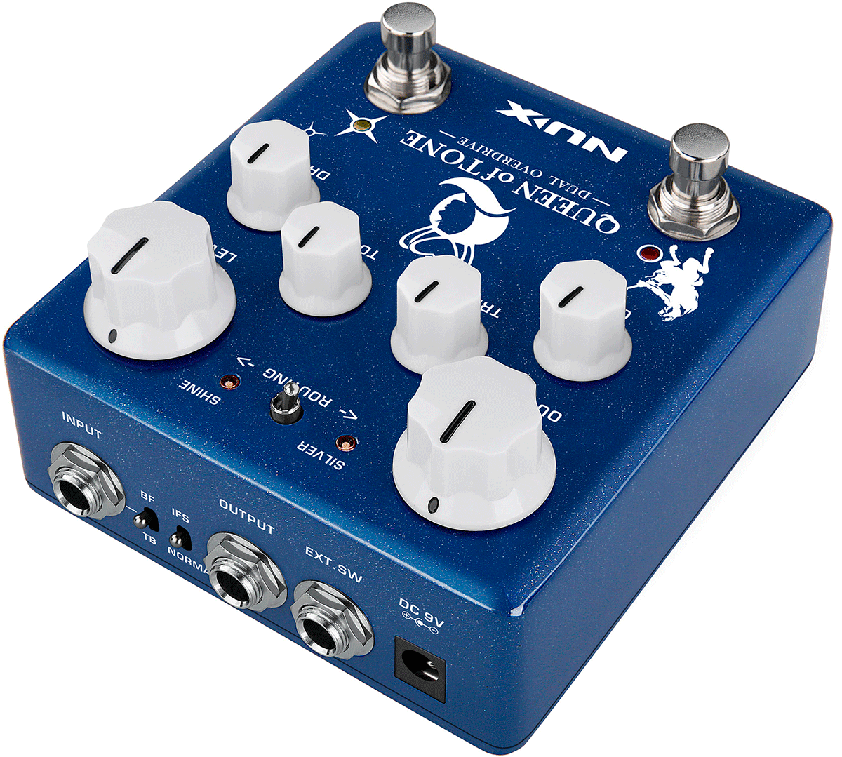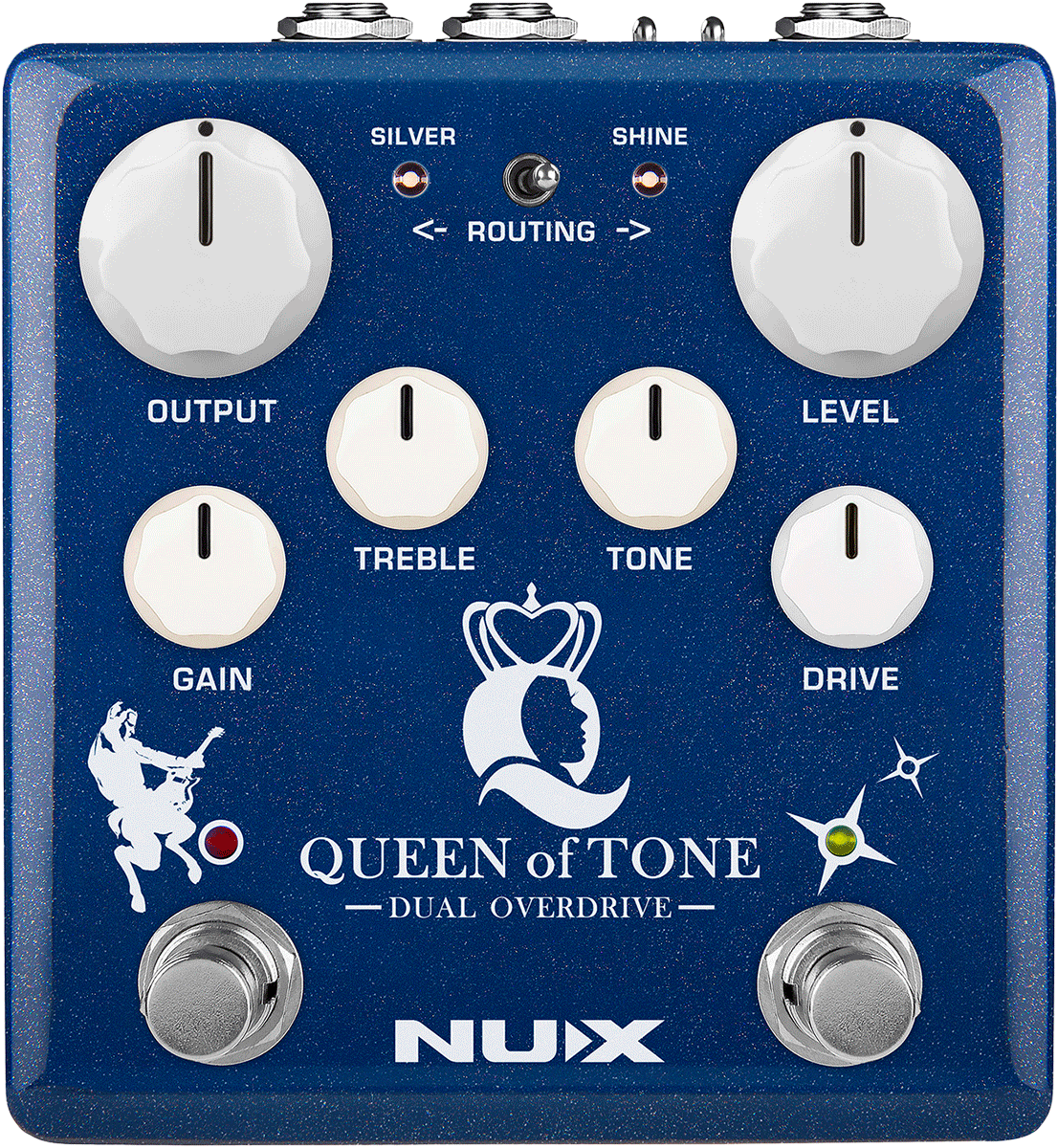 Parce que c’est une combinaison de sonorités bien connues qui ont magnifié de nombreux enregistrements de blues et de rock, l’association du son « BluesBreaker » avec le boost Centaure n’est plus à démontrer. Nux a décidé de combiner ses pédales MorningStar et Horseman afin d’offrir un double overdrive réunissant ces sons brillants, saturés et plein de headroom qu’adorent les guitaristes. La section MorningStar (Breaker) offre son mode « Shine » pour plus d’aigus et de clarté cristalline de l’overdrive. La section Horseman (Clone) bénéficie du mode « Silver » qui augmente la plage de gain et boost votre son. Chaque section peut être réglée avec les traditionnels potentiomètres de drive, tone et level pour ajuster votre son.