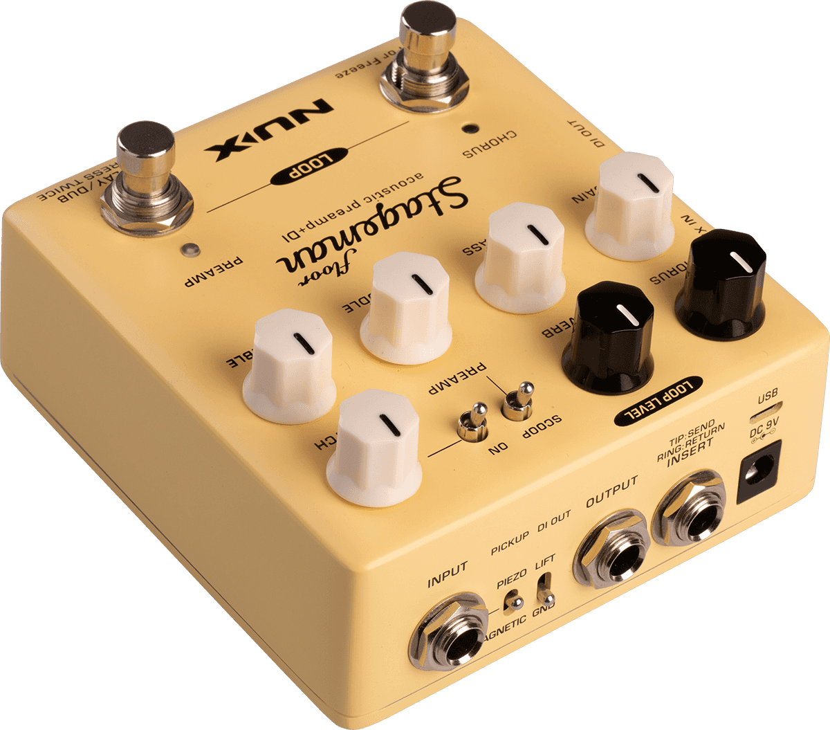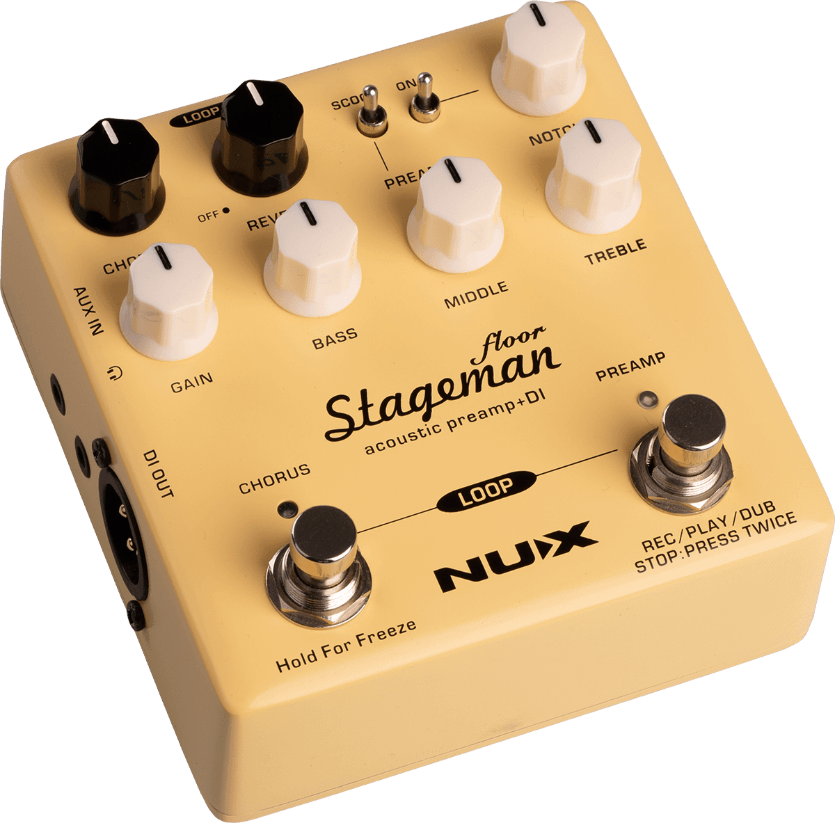 L'amplification d'un instrument acoustique est une science complexe à maîtriser : trop souvent, le rendu est trop brillant, trop mat ou trop plat, et les problèmes de larsen sont bien plus nombreux à cause de la caisse de résonance de la guitare. Pour contrer ces problèmes, un bon préampli spécialement conçu pour les instruments acoustiques est impératif. Et c'est exactement ce que propose Nux avec le Stageman Floor et son attirail de fonctionnalités, allant du préampli à la DI en passant par le looper pour s'accompagner sur scène en toute simplicité.