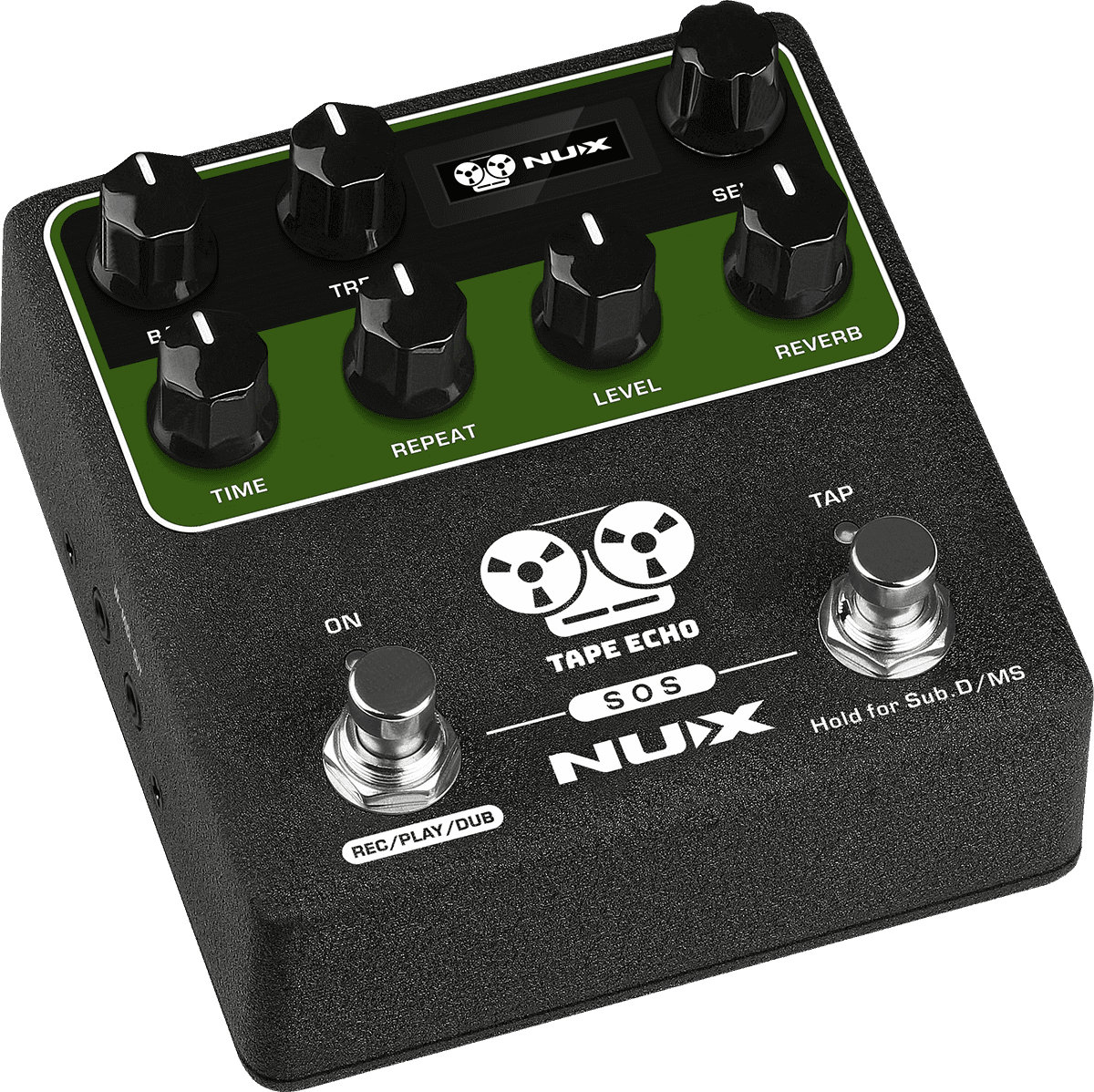 L’effet Tape Echo est bien connu des guitaristes et se retrouve sur de nombreux enregistrements légendaires. C’est le fameux délai vintage fonctionnant avec un système de tête d’enregistrement/reproduction du signal sur bande magnétique. Le Nux Tape Echo rend hommage au renommé SpaceEcho de fabrication japonaise datant de 1974. Cette technologie analogique nécessitait un boitier assez conséquent, et malgré sa relative fiabilité elle est très appréciée pour ses répétitions du son avec un grain si particulier, générant aussi une modulation, un scintillement et une saturation des délais. Cette pédale Nux Tape Echo de la série Verdugo modélise avec qualité et ingéniosité l’effet délai à bande magnétique avec la technologie Nux Core-Image, afin de reproduire ce délai caractéristique en offrant les avantages et la flexibilité du numérique. Cette technologie numérique embarquée fournie donc grâce à son convertisseur 32 bit une modélisation de très grande qualité, pour des sons de délais bluffants qui embelliront vos plus jolis arpèges ou solos !