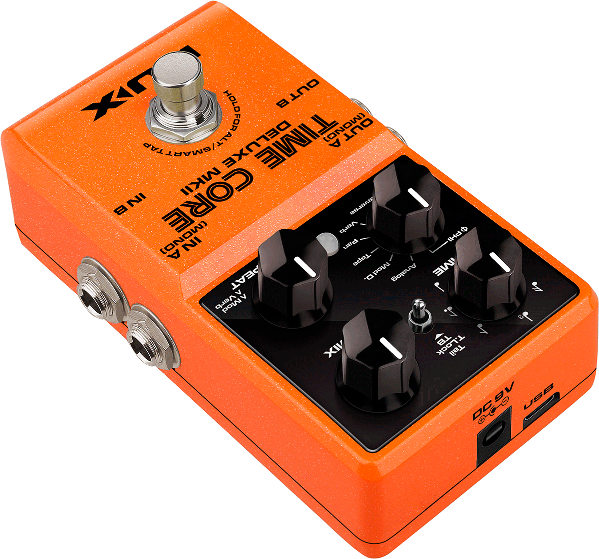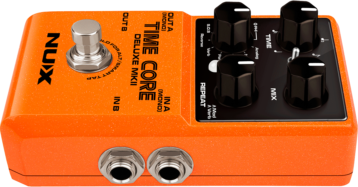 La NUX TIME CORE DELUXE MKII est une pédale d'effet délai avec 7 types de délai différents et un looper de phrase : Φ Phi Digital Delay, Analog Delay, Modulation Delay, Tape Echo, Pan Delay, Verb Delay, Reverse Delay et Sound On Sound (S.O.S).