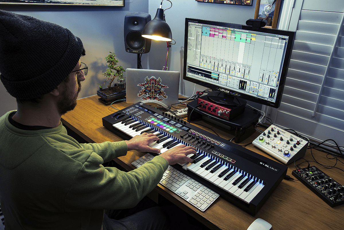 Novation a travaillé avec Ableton pour créer un clavier contrôleur absolu pour leur logiciel de création de musique Live. Les cinq écrans LCD couleur donnent un retour complet des paramètres, permettant ainsi de visualiser tout ce que vous contrôlez.Séquenceur interne huit pistes