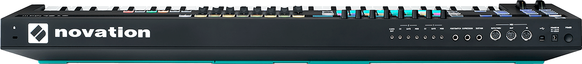 USB, MIDI In, Out, Out 2/Thru, 3 entrées pour contrôle au pied, Horloge analogique et 2 sorties CV Pitch, Gate et Mod peuvent être utilisés pour acheminer n'importe quoi, n'importe où…- 49/61 notes sensibles à la vélocité, doté de ressort individuel, style synthé, semi-lesté