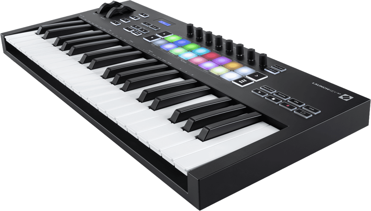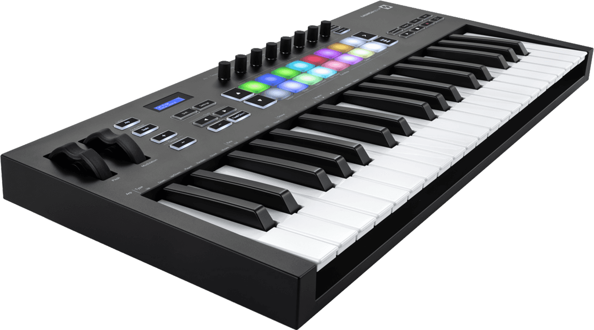 Mk3 - 37 notes, 16 pads Prenez le contrôle de n'importe quelle configuration musicale avec le clavier contrôleur MIDI Launchkey 49 MK3 de Novation. Créez et jouez dans Ableton Live et connectez vos équipements MIDI externes. Les modes Scale et Chord élargissent votre vocabulaire musical, les pads et les touches sensibles à la vélocité offrent un contrôle expressif.
