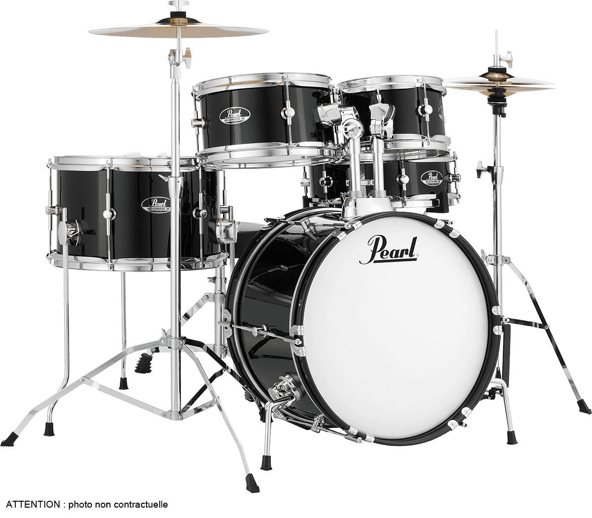 Ces fûts qui totalisent 6 plis de peuplier avec un Rhodoïd impeccable, proposé en deux couleurs pour la Roadshow Junior. Le coloris « Jet Black » allie ici la sobriété et l’élégance intemporelle du noir brillant et l’accastillage Pearl affiche ses lettres de noblesse. Le tout servi par une réputation de solidité qui vaut aussi pour l’entrée de gamme. Piques, tiges, coquilles et cercles ne font pas défaut, tout comme le déclencheur de timbre. Tout a été étudié pour durer, y compris sous les baguettes de débutants qui ne s’y prennent pas toujours comme il faut.
