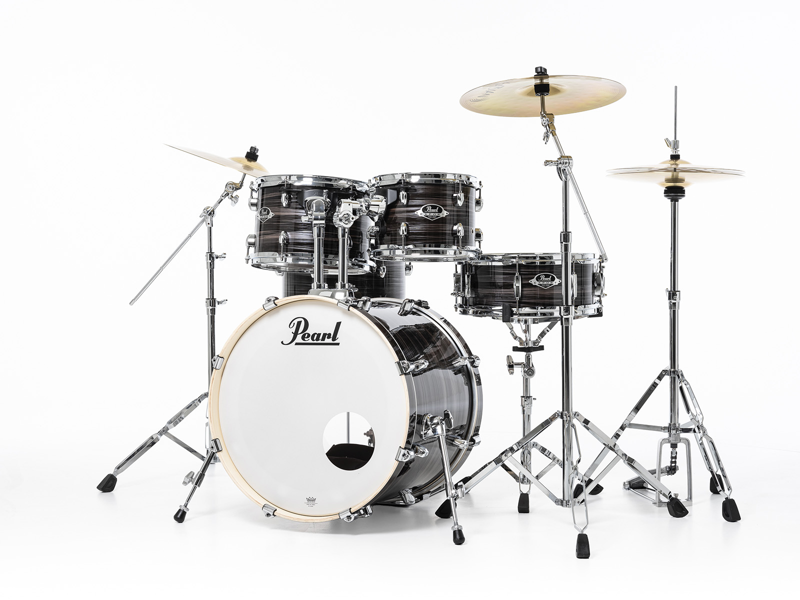 En fournissant avec l’Export un nouveau pack hardware HWP-834 composé d'une pédale de grosse caisse Demonator, d'un pied de charleston Demon style, d'un pied de caisse claie S-830 et, maintenant deux stands cymbales mixtes BC-930, et un jeu de cymbales, rend ce kit idéal pour commencer. Pearl a pensé à tous ceux qui font leurs premières armes. Avec ces accessoires-là, un pro pourrait sans sourciller assurer une tournée. Bonne nouvelle, cette batterie iconique et prête à jouer, et relever n'importe quel défi ! Dans cette version très versatile, elle incarne encore et toujours l’outil rêvé pour démarrer en beauté.- Accastillage : Chromé