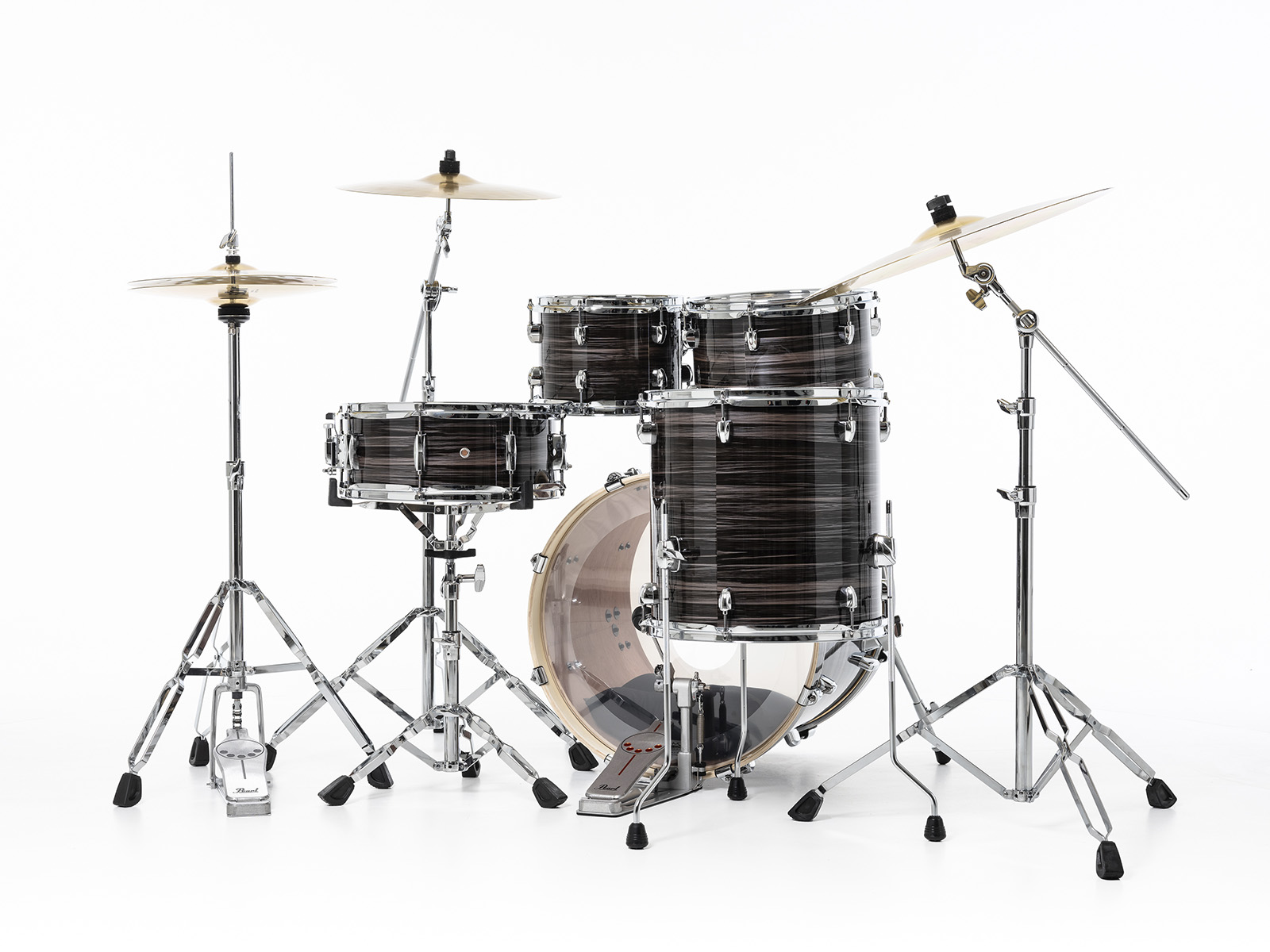 Question bois, Pearl a réussi ici l’exploit de reléguer au placard des nanars les fûts en bois de cagette de certaines marques à bas coût au profit d’une combinaison à six plis de peuplier et d’acajou, une association évidemment gagnante. Un souci de qualité qu’on retrouve sur les différents stands, notamment ceux de la caisse claire et des cymbales dotés du système UniLock à l’efficacité redoutable quelle que soit la position choisie.
