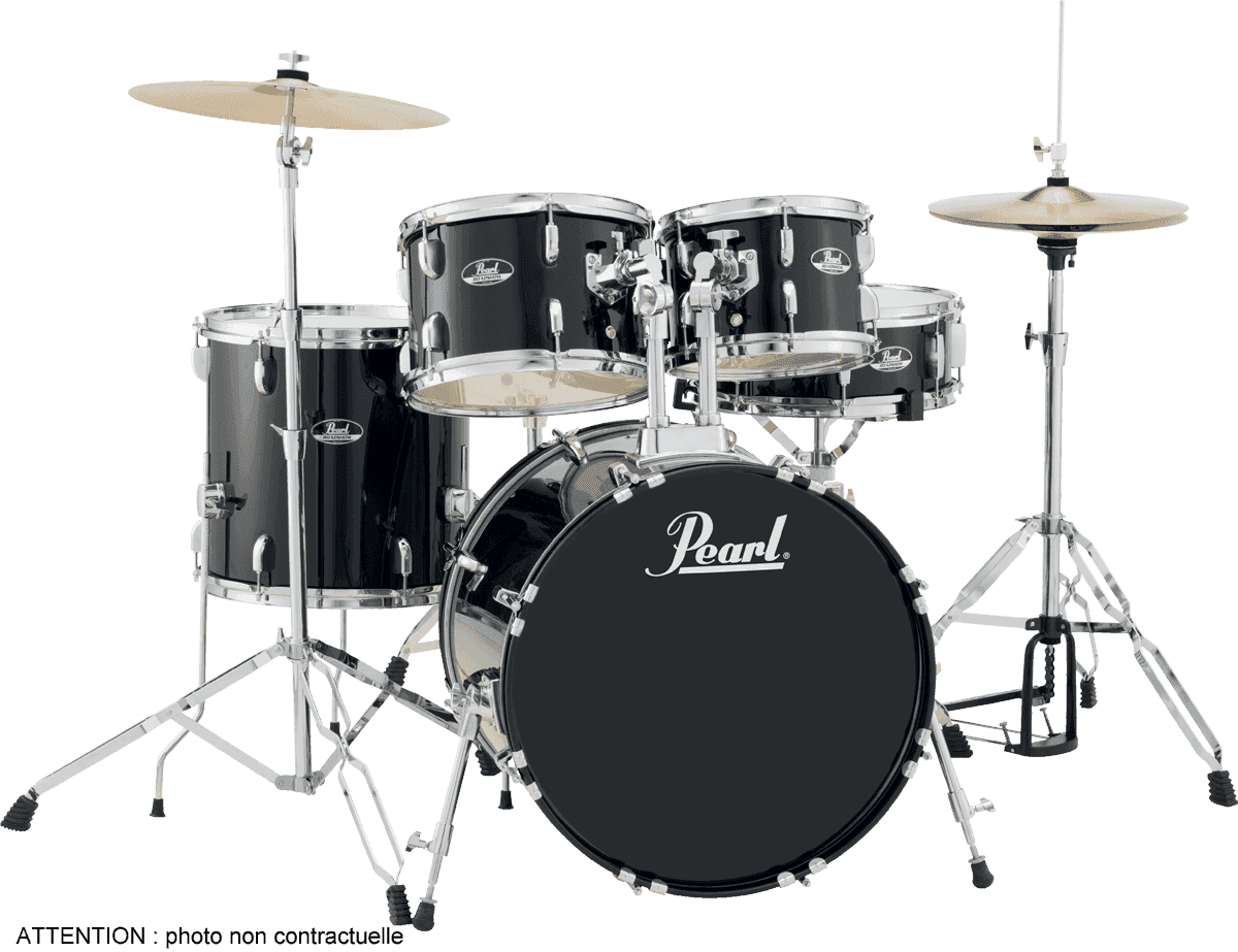 - Accessoires : 1 pédale de grosse caisse P-50, 1 siège D-50, 1 set de cymbales Pearl (hi-hat 14" et crash/ride 16"), 1 paire de baguettes et 1 housse de baguettes
