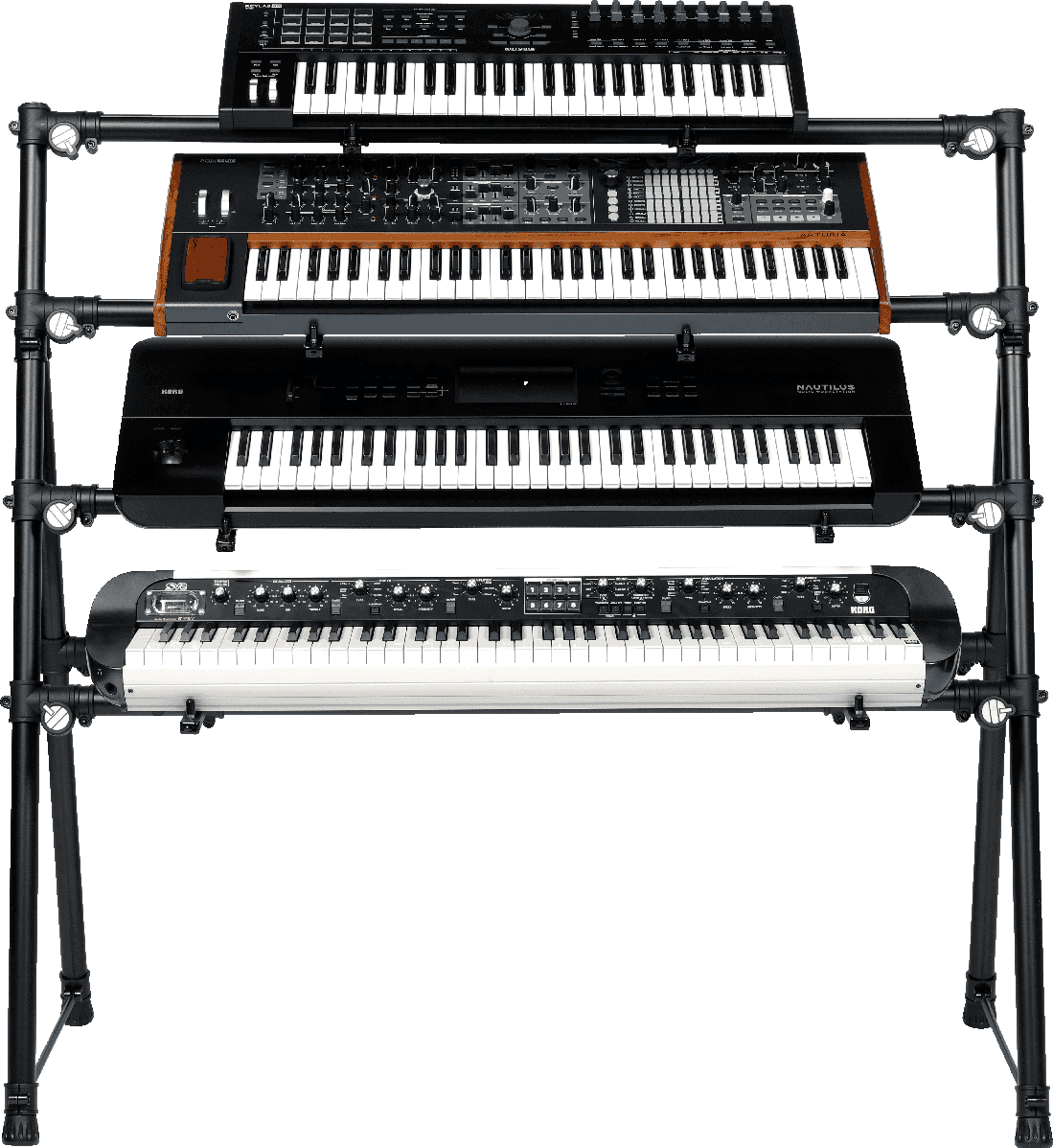 Stand claviers 4 niveauxModèle ingénieux à l’esthétique contemporaine, ces stands disposent d’une construction solide en aluminium moulé sous pression qui garantit légèreté et robustesse.